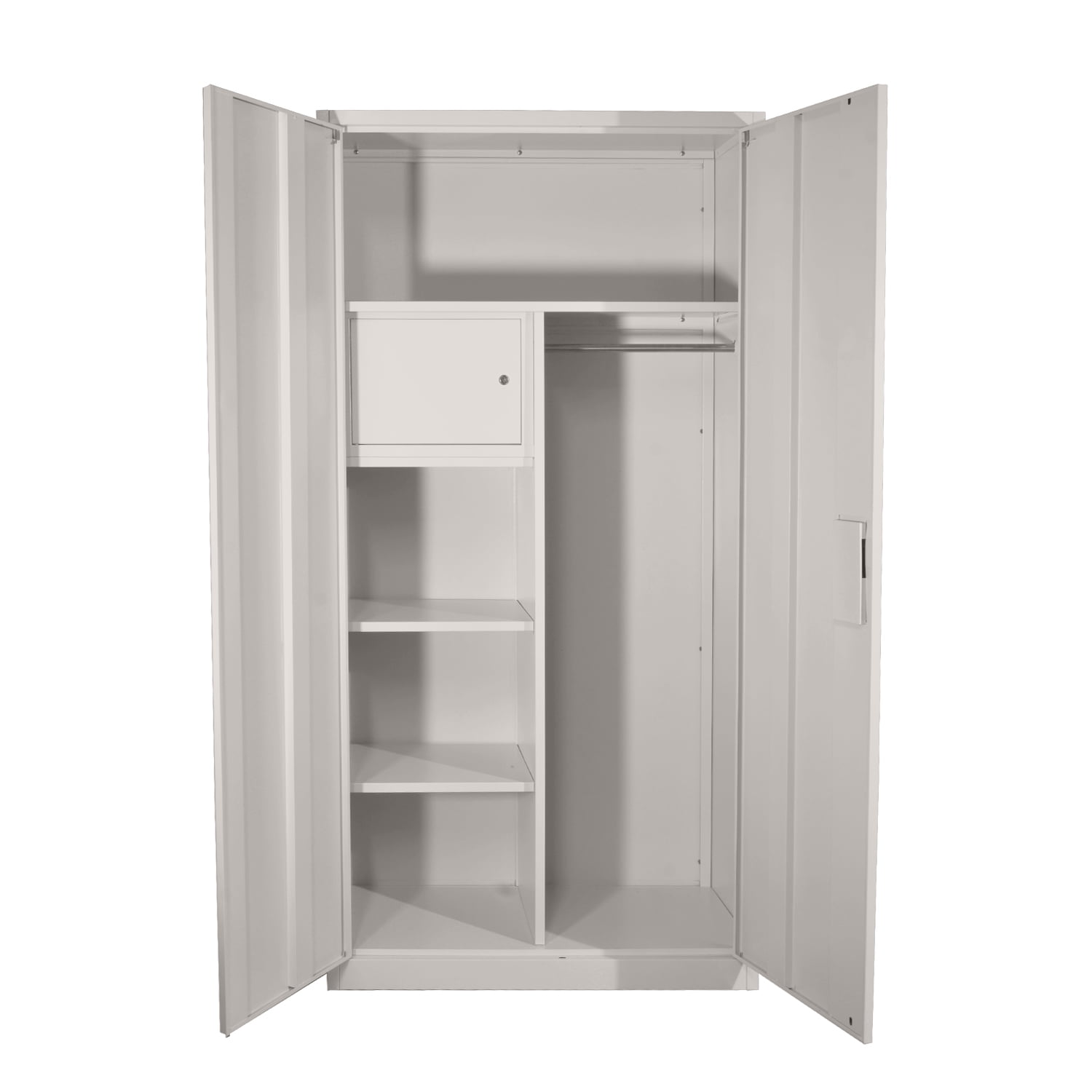 CON AMPLIO ESPACIO. El locker cuenta con un tañado de gran amplitud para resguardar variados artefactos entre cajas, papelerías, accesorios, objetos personales, dinero o archivos. Esta diseñada con dos puertas abatibles para facilitar la apertura del producto.$$CAJA DE SEGURIDAD. El gabinete destaca un compartimento de 44 X 33 X 32 cm para resguardar bajo llave tus pertenencias de gran valor. Esta sección cuenta con set de llaves para mantener bajo candado artefactos valiosos.$$PERCHERO. Incluye un espacio lateral bastante amplio para utilizarlo como guardarropa ya que integra un tubo para colgar prendas. La altura del perchero a la base del casillero es 126 cm X 46 cm de ancho y 37.5 de profundidad, ideal para todo tipo de ropa.