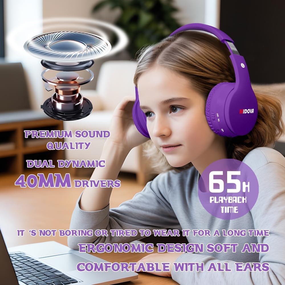 • Diseño cómodo y plegable: la diadema ajustable le da a los auriculares una flexibilidad impresionante, por lo que pueden adaptarse a la forma de tu cabeza para un ajuste perfecto. almohadillas para orejas suaves para los oídos y cómodos de larga duración sin estrés, aptos para adolescentes en crecimiento incluso adultos. Es el gran compañero de viaje de tu hijo, deja que tus pequeños disfruten del viaje sin molestarte.