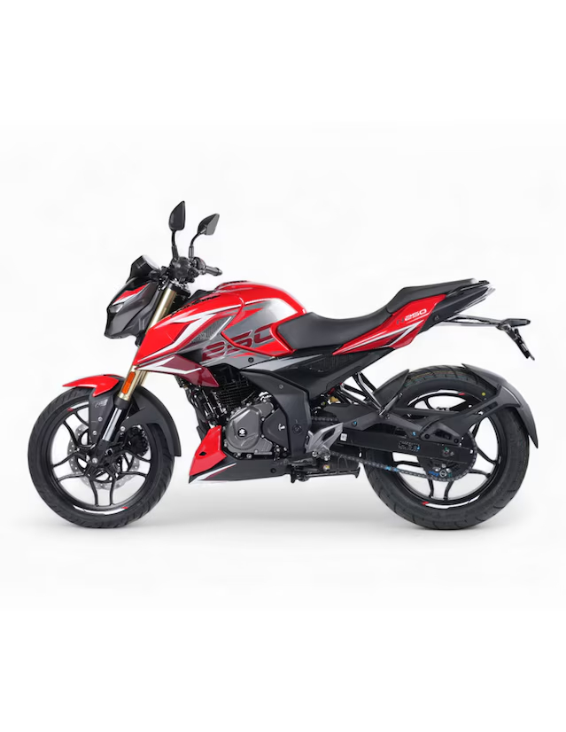 Nuevo diseño deportivo para rodar con estilo y conquistar el entorno urbano. Cuenta con transmisión de 5 velocidades. Sistema de frenos ABS de doble canal para tener mayor precisión en el frenado. Botón mono mando, Bluetooth y tablero con LCD. Motor 4 tiempos, 2 válvulas, 2 bujías, SOHC. Cilindrada: 249.07 CC Potencia: 24 HP @ 8750 RPM Torque: 21.5 N.M @ 6500 RPM. Suspensión frontal invertida de 43 mm y suspensión trasera Monoshock Ajustable. Refrigeración por aceite. CHASIS: Tabular diamante. Distancia mín. al suelo: 165 mm. Peso en vacío: 164 Kg. Capacidad de tanque: 14 L. Arranque: Eléctrico con sistema de encendido ECU Bosh.