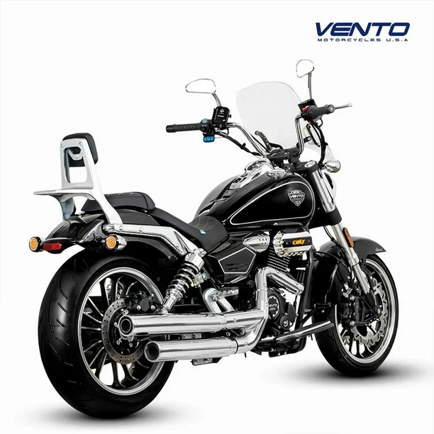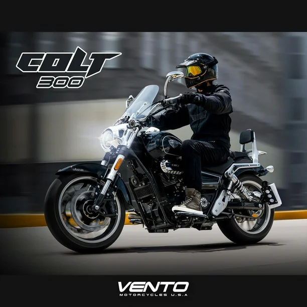 COLT 300 Leyendas que dominan el presente ¡Libera al rebelde que llevas dentro! La motocicleta Vento modelo Colt 300 2026 combina lo mejor de ambos mundos: el estilo de una chopper clásica y la innovación de la tecnología que integra un sistema de encendido sin llave, un tablero digital y un faro redondo de luz LED, sin duda, vivirás una experiencia de conducción única. La Colt 300 es mucho más que una belleza estética. Su potente motor de 4 tiempos, enfriado por aceite y 4 válvulas, te proporcionará una velocidad máxima de 130 Km/h y una potencia de 28 HP acoplado a una transmisión de 6 velocidades, para que puedas disfrutar de una conducción emocionante. El sistema de freno delantero de disco doble, y la suspensión trasera de doble amortiguador con resorte absorbe las irregularidades del camino, brindándote una conducción más cómoda. Gracias a su tanque de 18 litros y un rendimiento de 30 km/l, podrás recorrer hasta 480 km, disfrutando al máximo cada kilómetro. ¡Comparte tus aventuras! la Chopper cuenta con un cómodo asiento con respaldo diseñado especialmente para tu acompañante, brindando un viaje suave y placentero. Además, la incorporación de la tecnología VenTec, te permitirá enlazar la moto con tu smartphone para subir o bajar el volumen de tus canciones favoritas, adelantar o regresar canciones y contestar o declinar llamadas.