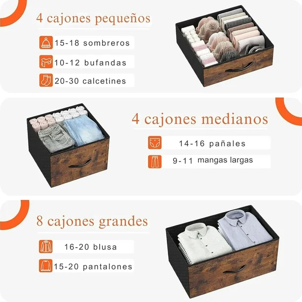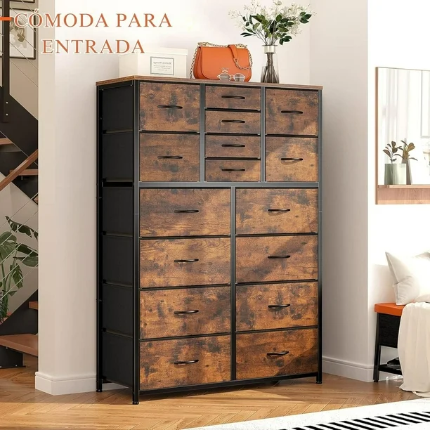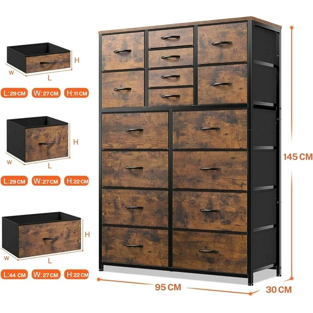 - Fácil de montar: Tamaño de tocador rústico: 30 cm de largo x 95 cm de ancho x 145 cm de alto. Los videos de instalación y las instrucciones lo ayudan a ensamblar fácilmente la cómoda de 16 cajones. Esta cómoda se puede usar en varias habitaciones, ideal para armarios, recamaras
