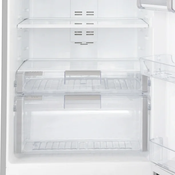 Jaladera tipo sirius, Display táctil, Smart Station. En enfriador: 3 parillas de cristal templado, 3 anaqueles en puerta, 1 anaquel especial para botellas, Cajón legumbrero con tapa de cristal, Cajón de carnes frías, Luz LED. En Congelador: 1parrilla de cristal templado, 2 anaqueles en puerta, Fábrica de hielos cenital
