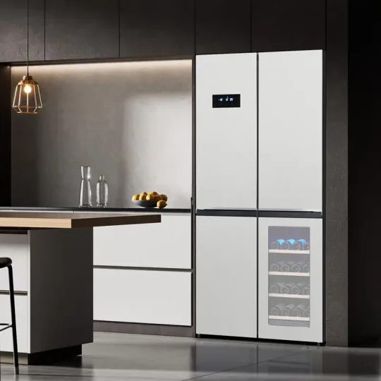 Refrigerador de puerta francesa Adoolla de 21 pies cúbicos, congelador inferior con gabinete para vinos, estantes de vidrio ajustables, refrigerador de cocina de 4 puertas en acero inoxidable, plateado detalles 4