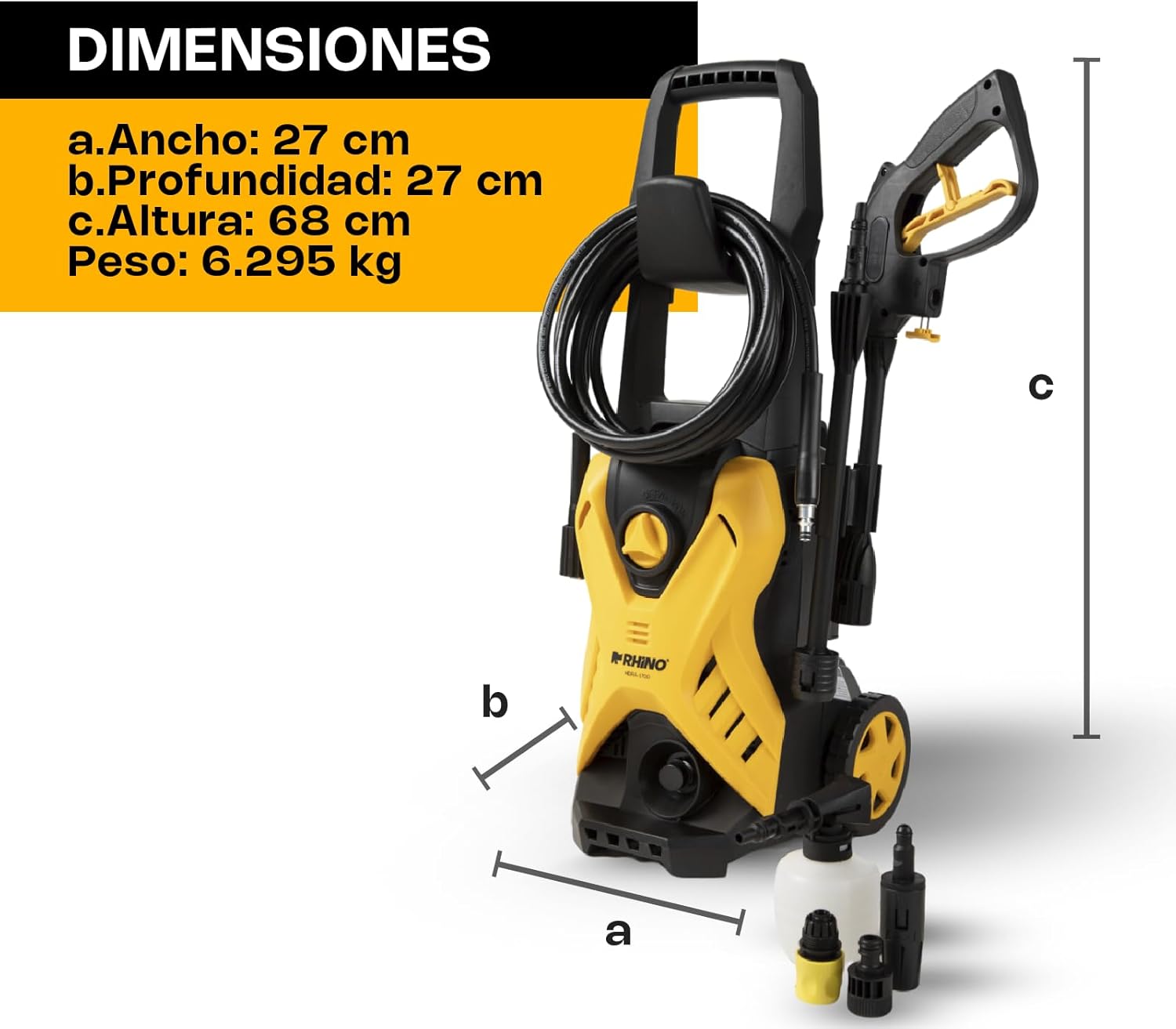 - Limpieza Óptima: Con una impresionante presión de 1700 PSI, nuestra hidrolavadora ofrece una capacidad de limpieza superior. Elimina fácilmente suciedad, grasa y mugre de cualquier superficie con eficacia.