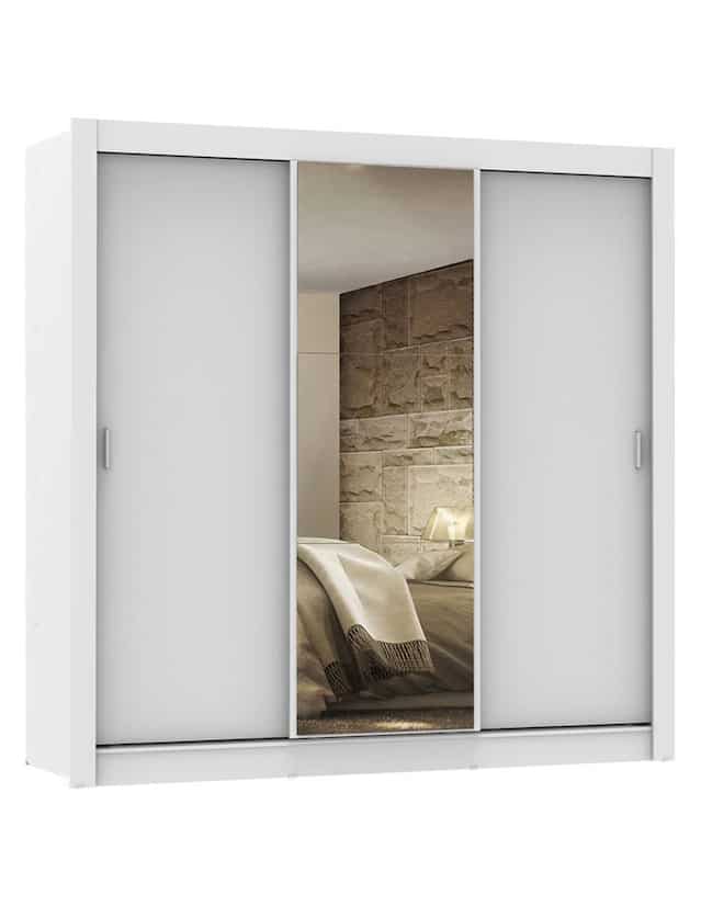 El Ropero Matrimonial Matrimonial con la mejor relación calidad-precio del mercado. Herrajes de calidad, una puerta con espejo, colgador metálico y pintura de Poliéster Protector que otorga durabilidad y resistencia. Las puertas corredizas cuentan con riel superior e inferior de aluminio y sistema de deslizamiento suave garantizando un mejor funcionamiento. Aprovechamiento total del interior teniendo en cuenta el uso de dos personas. Dos cajones internos con corredera metálica, numerosos nichos que facilitan la organización de ropa, calzado y accesorios. El tubo del colgador es muy resistente y tiene espacio para ropa larga. El acabado interno y externo es blanco, con pintura de Poliéster de alta resistencia que otorga mayor durabilidad al producto. La pintura es ecológica, sin emisión de gases que afecten la atmósfera. Medidas totales del ropero: 205 cm de altura x 170 cm de ancho x 46 cm de profundidad. Imagen meramente ilustrativa. Artículos incluidos: - Tres (3) estantes, totalizando cinco (5) nichos. - Dos (2) cajones internos. - Un (1) colgador grande. - Tres (3) puertas corredizas, dos (2) de madera con dos (2) manijas de PVC y una (1) con espejo. Código de producto: 1093091E2G Nota: Madesa no ofrece servicio de montaje. El producto se envía con manual de instalación y todos los herrajes necesarios para su armado.