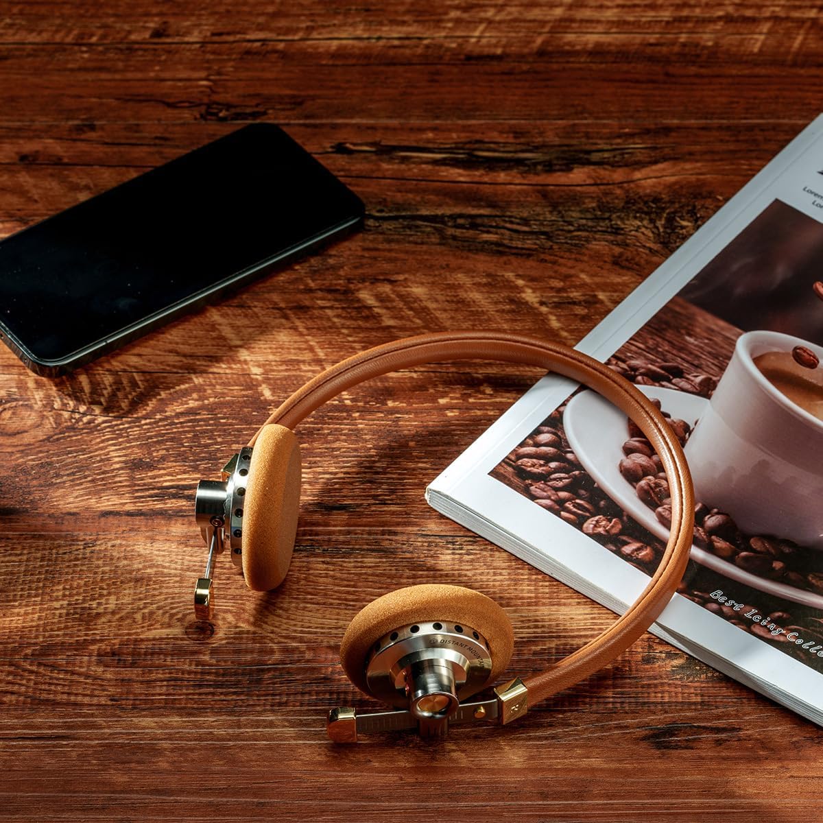 ROSESELSA Distant Mountain On Ear HIFI Wired Headphones OOTD Vintage Headset Celebrity Earphones Fashion Outfits for Street Snap Live Camera MMCX 3.5mm (Brown, without Dongle)