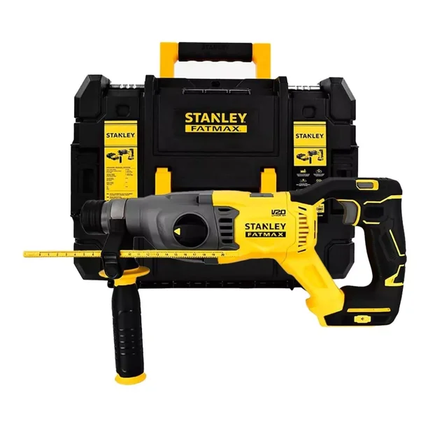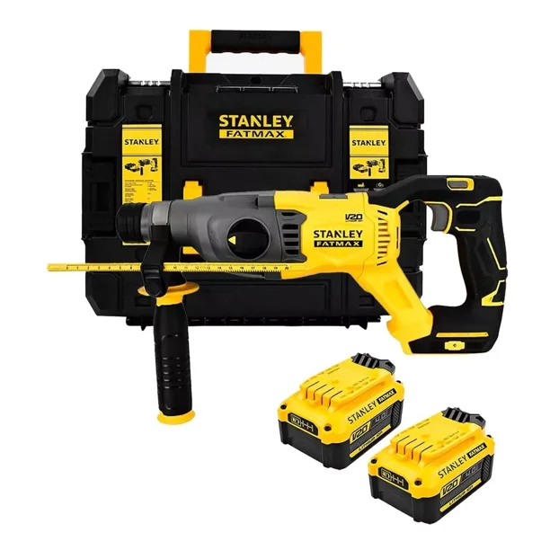 Broquero: SDS Plus Energía de impacto único: 2,0 J Voltaje: 20V Velocidad sin carga: 0 - 1500 min-1 Golpes por minuto: 0 - 5500 gpm Capacidad de perforación: Hormigón de perforación máxima: 22 mm Perforación máxima de acero: 13 mm Perforación máxima de madera: 30 mm Modo de operación: perforación, rotomartillo y cincelado Peso: 2.3 kg