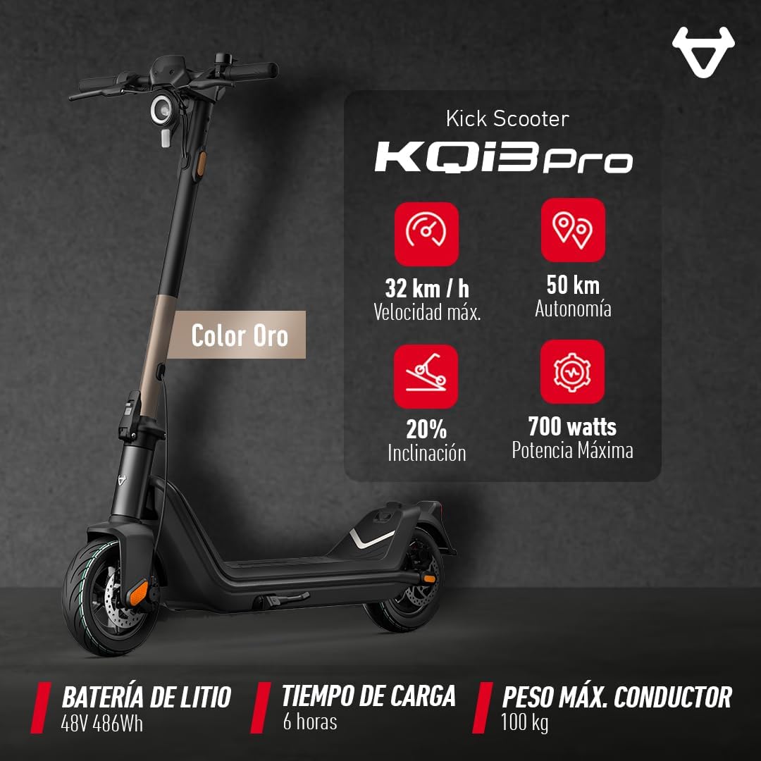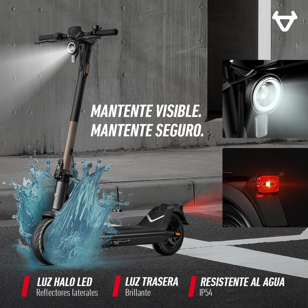 • MOTOR DE ALTO RENDIMIENTO | Motor continuo de 350W con picos de 700W para aceleración potente y velocidad máxima hasta 38 km/h.