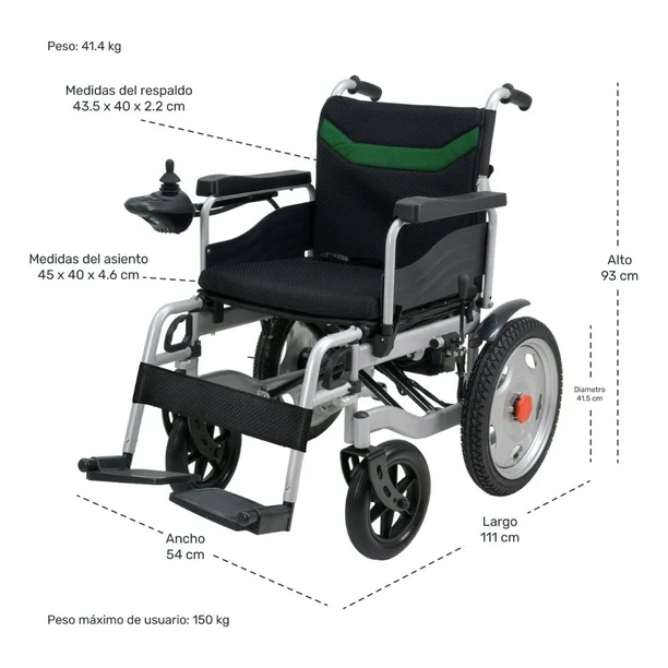 • ESTRUCTURA RESISTENTE. Silla de ruedas eléctrica con 5 velocidades predeterminadas y una velocidad máxima de 6 km/h. Fabricación en acero, malla MESH transpirable, ruedas de nylon y plástico ABS resistente al alto impacto. Por su estructura puede soportar hasta 150 kilogramos de peso continuo. $$CONTROLES AVANZADOS. Los controles para conducir la silla de ruedas son fáciles e intuitivos de utilizar. Te sirven para encender / apagar la silla, bocina, disminuir velocidad, aumentar velocidad y para maniobrar es suficiente con manipular la palanca de 8 ejes con movilidad de 360°.$$ CARACTERÍSTICAS ESPECIALES. Cuenta con indicador de luz led en los controles que te muestran la carga de la batería, la velocidad y también el indicador del cargador. Integra reposapiés abatible. La silla incluye dos ruedas de apoyo que se encuentran en la parte inferior trasera de la silla.