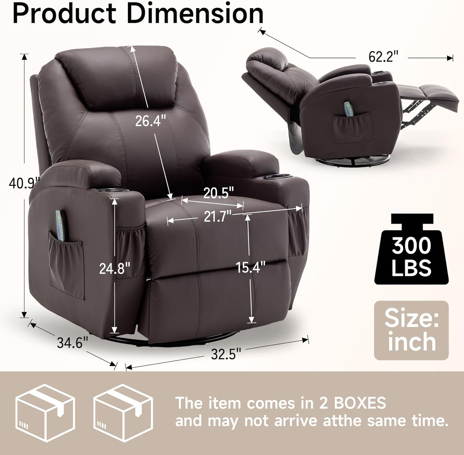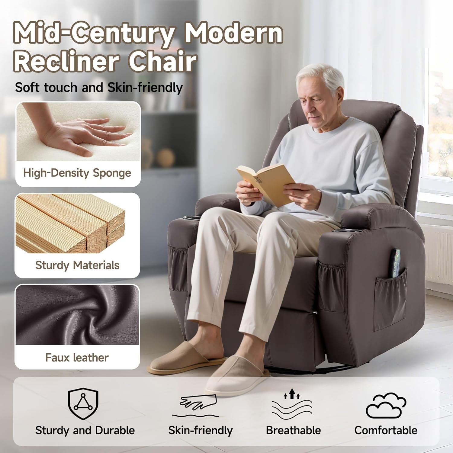 - Reclinador giratorio giratorio: el sillón reclinable cuenta con un giro completo de 360 grados y una función relajante de balanceo que promueve la relajación, por lo que es ideal para arrullar a los niños a dormir o relajarse después de un largo día en el trabajo. El suave movimiento de balanceo ayuda a aliviar el estrés y crear un ambiente calmante. La función giratoria añade un elemento de diversión y entretenimiento. Construido con robustos soportes de madera y metal, la silla reclinable tiene una estabilidad duradera y garantiza una experiencia cómoda de balanceo.