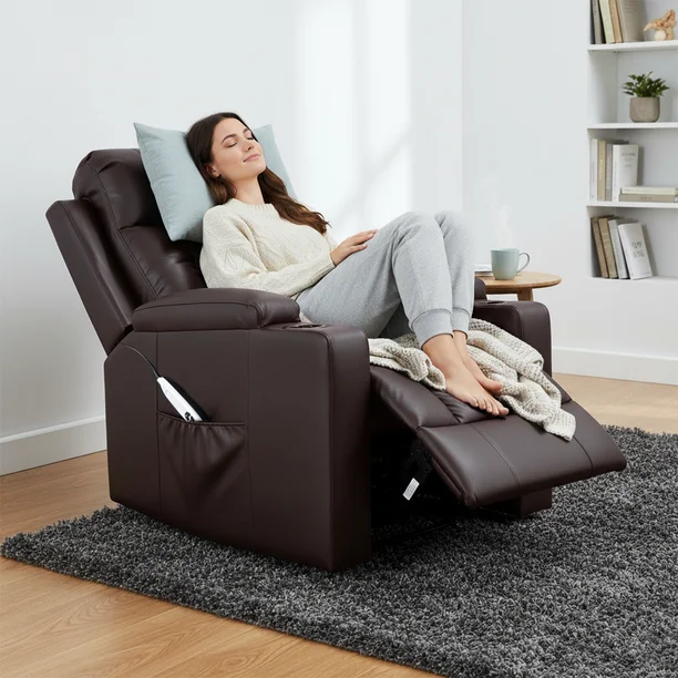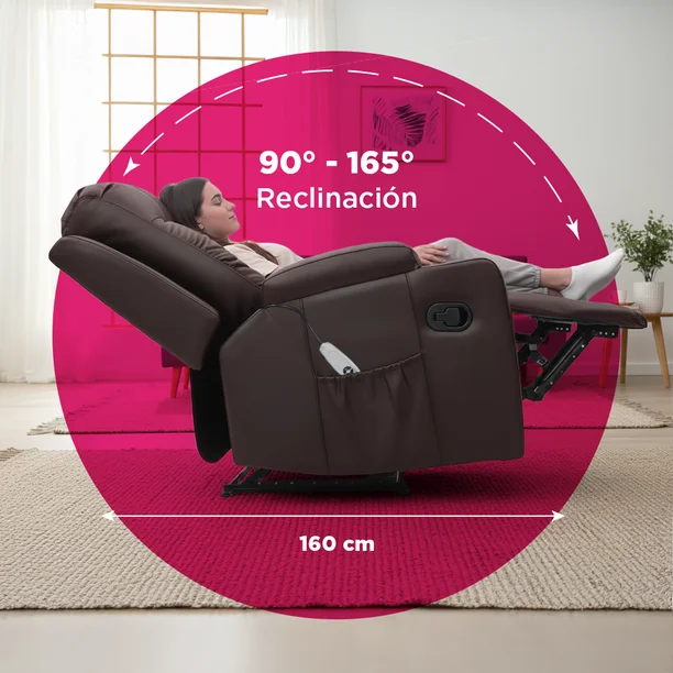 Tecnología de confort: Masaje que revitaliza Integra puntos de masaje estratégicamente distribuidos en la espalda, zona lumbar y piernas. Esta función, combinada con la reclinación, convierte al sillón en un centro personal de bienestar, ideal para liberar tensiones y disfrutar de una experiencia de relajación completa.