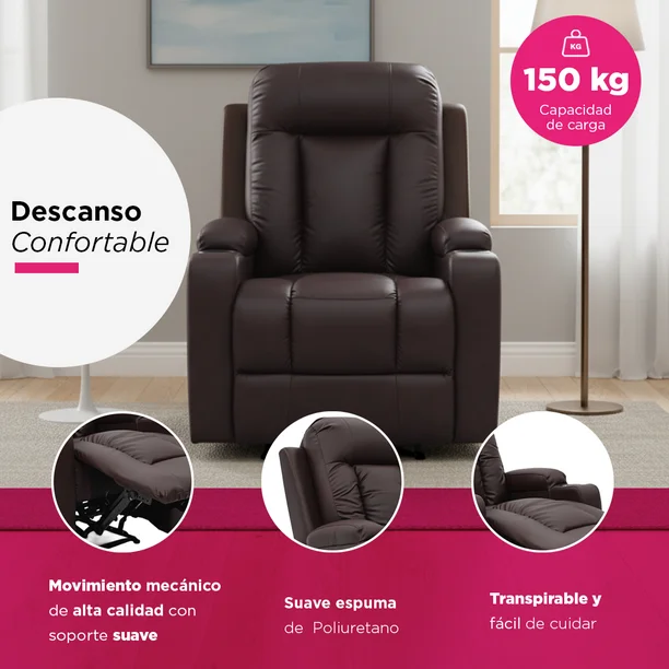 Dimensiones: Espacio pensado para tu comodidad Con medidas de 81 cm de ancho, 92 cm de fondo y 109 cm de alto, este sillón está diseñado para adaptarse cómodamente a espacios residenciales sin perder presencia. Su tamaño favorece una postura ergonómica, proporcionando soporte completo desde la zona lumbar hasta la cabeza, ideal para sesiones prolongadas de descanso, lectura o televisión.