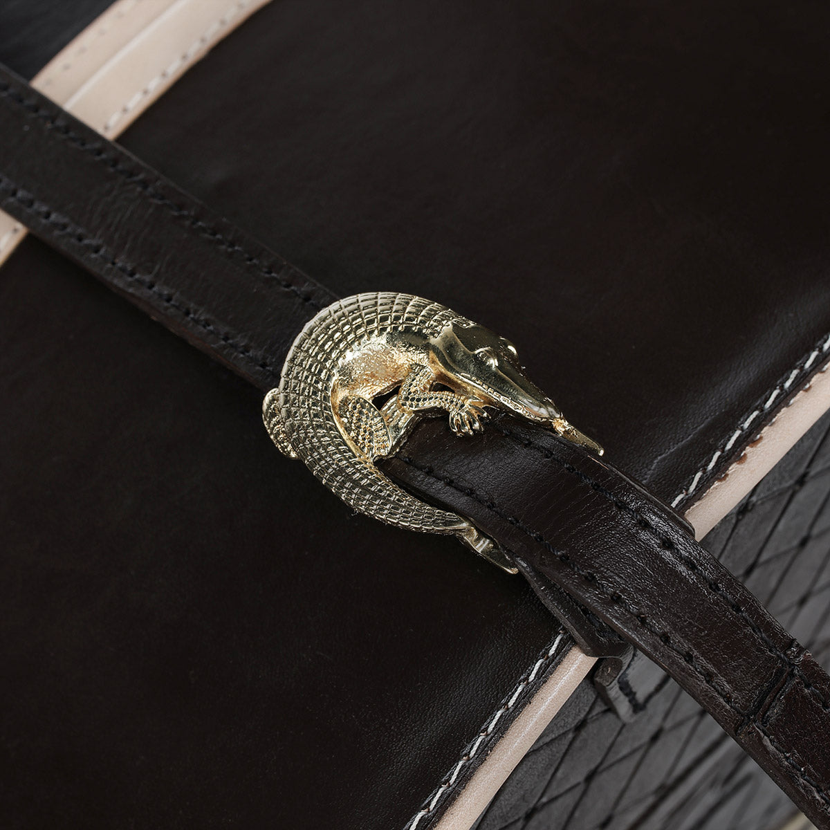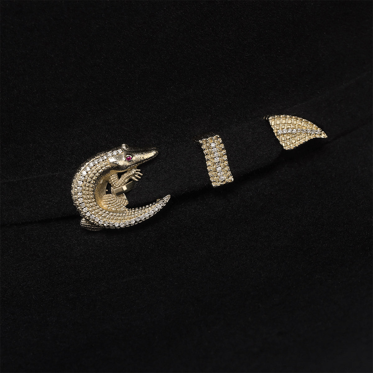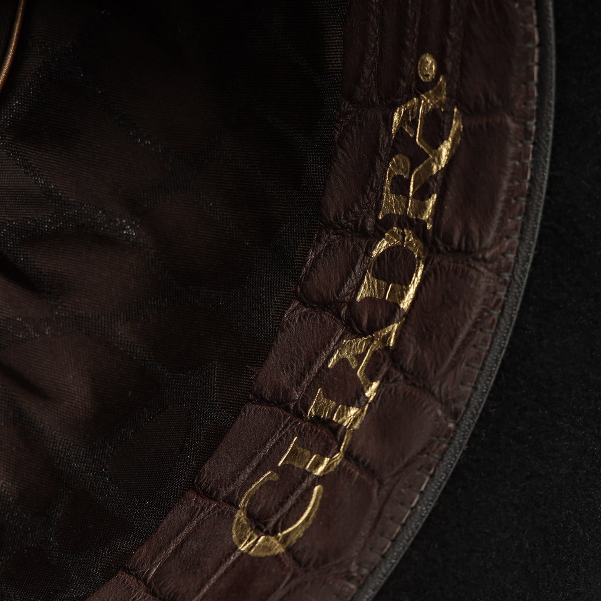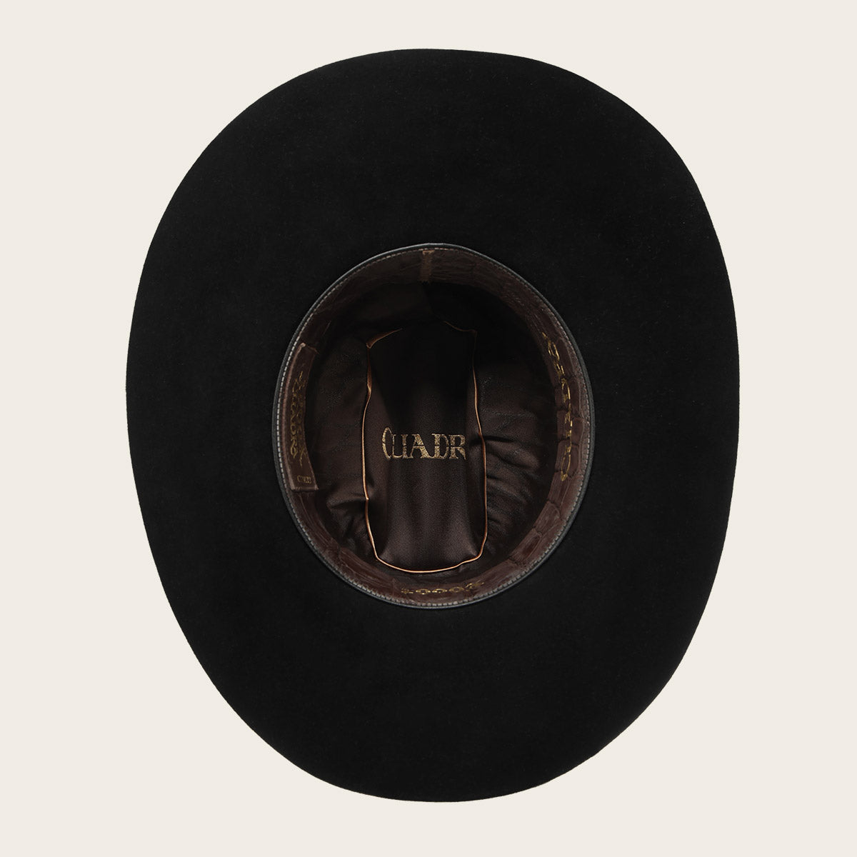 Sombrero Cuadra en pelo genuino de castor. Hecho a mano, con toquilla en pelo genuino. Presenta Hebilla con baño de oro de 14K, incrustaciones de 50 diamantes genuinos y 2 rubies auténticos . Con tafilete en piel genuina de cocodrilo. Forro con diseño de cocodrilo. Ala de 4 pulgadas. Cuenta con estuche exclusivo cincelado a mano y certificado de autenticidad.