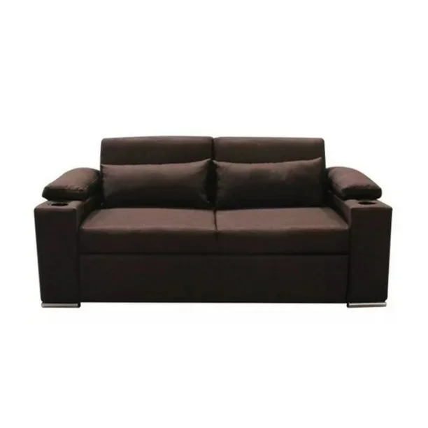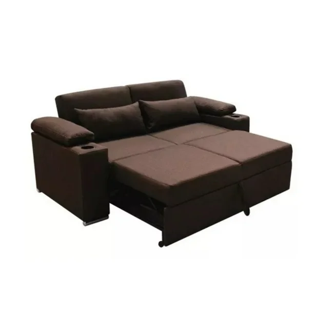 Sofa cama Element diseño de Mobydec Muebles Sofa cama sinónimo de comodidad y estilo Cuenta con un respaldo que puede acomodarse en 3 posiciones diferentes para que todo el tiempo estés cómodo ademas de portavasos color chocolate