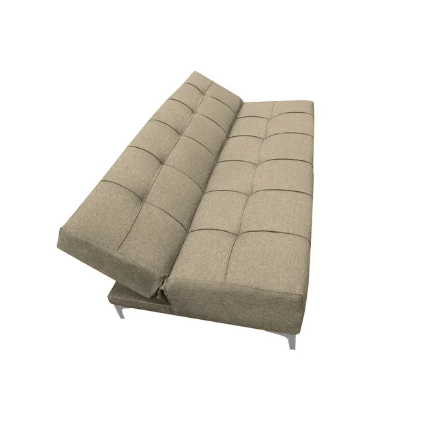 Sofá cama, ideal para las visitas inesperadas o para un cuarto para estudio. Su acabado abotonado le da un toque elegante y moderno a la vez. Medidas: Altura 75 cm, largo 170 cm, Profundidad 80 cm. Tapizado en fina tela Lino nacional en color Beige. Con hule espuma de alta densidad para mayor comodidad. Patas metalicas cromadas. Somos fabricantes. Nota: las patas vienen por separado por tema de seguridad, por lo que se deben de colocar con taladro (esquina del sofa con esquina de cada pata)