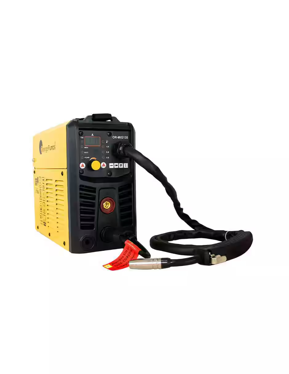 Máquina de soldar microalambre TIG, MMA y MIG modelo OR-MIG135 de la marca PUMPSF&Q. Este soldador inversor permite trabajar con procesos de electrodo, microalambre (con o sin gas) y TIG. Compatible con electrodos 6013 y 7018 de 3/32" y hasta un máximo de 1/8". Funciona con voltaje de 127 V a 60 Hz y ofrece una carga máxima de 120 A para MIG y 100 A para MMA, con ciclos de trabajo del 60 % al 30 %. Es compatible con microalambre de 0.8 mm (0.30) y 1.0 mm (0.35), y electrodos de 1.6 mm a 3.2 mm. Incluye antorcha de 2 m, cable con pinza porta electrodo de 3 m, cable de tierra (masa) de 1.65 m, conexión rápida de cable de 3/8", cepillo de alambre con quita escoria y careta de paleta con sombra 13. Tiene capacidad para carrete de microalambre de hasta 1 kg. El equipo es apto para soldadura con gas o sin gas. Peso: 10.5 kg. No incluye rollo de microalambre