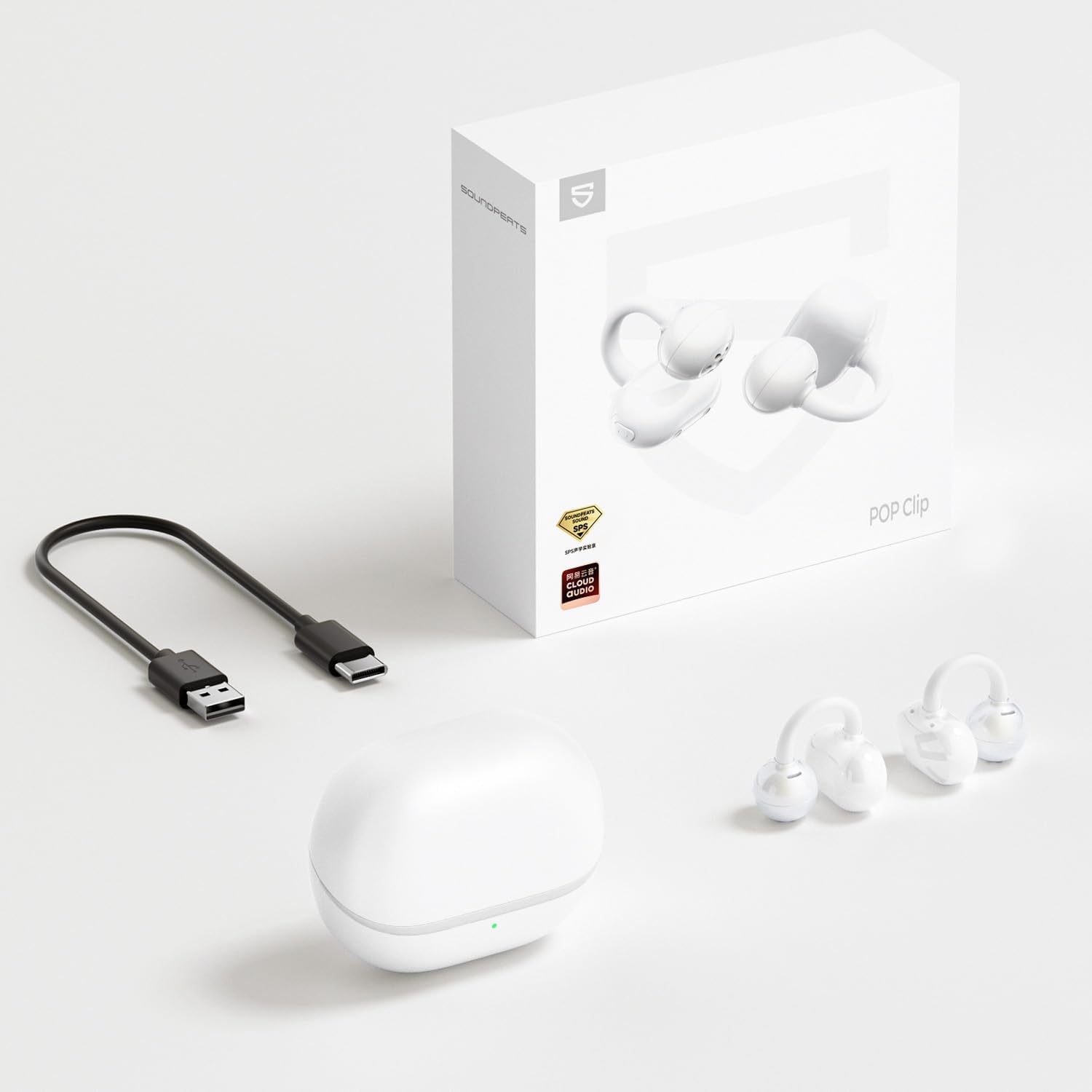 SoundPEATS Pop Clip Audífonos de Oído Abierto Bluetooth 5.4 Open Ear Inalámbricos Carga Rápida IPX5 Cancelación de Ruido Llamadas con IA Modo de Baja Latencia para Juegos 30Horas con Aplicación