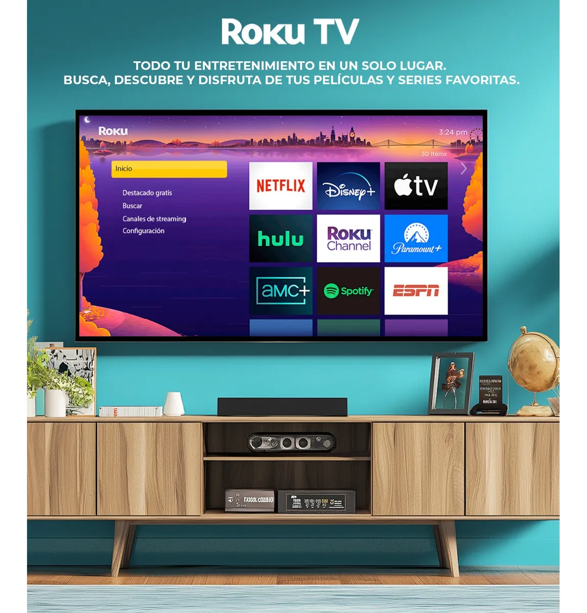 -Roku Smart TV: transmita de forma inalámbrica más de 500 000 películas y episodios de TV disponibles en miles de canales gratuitos o pagos, presentados convenientemente a través de su propia pantalla de inicio personalizable