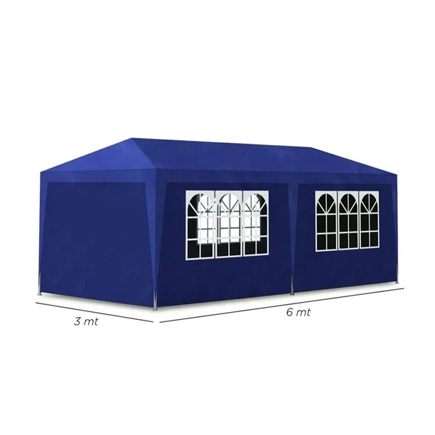 Toldo Armable de 6 metros x 3 metros con paredes y con ventanas impermeables ideal para tus eventos, fiestas o reuniones familiares ademas te protege de rayos UV y de vientos ligeros
