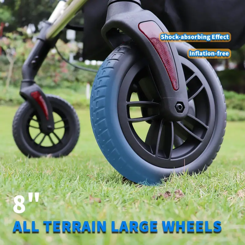 Andador de ruedas resistente para personas grandes de 450 libras, con asiento extra espacioso, NO apto para puertas estándar de 26" de ancho, un poco voluminoso para personas mayores ligeras