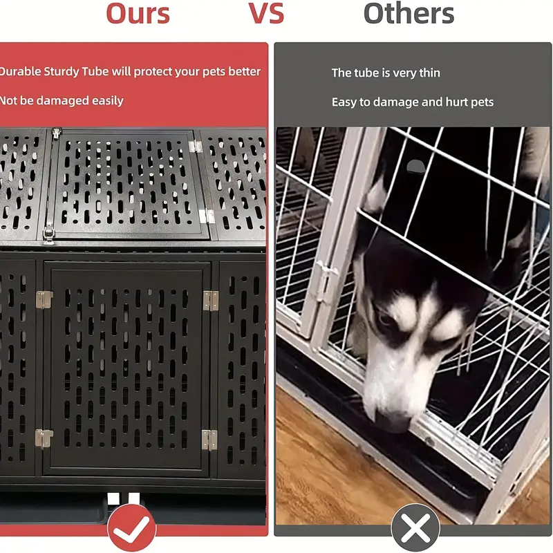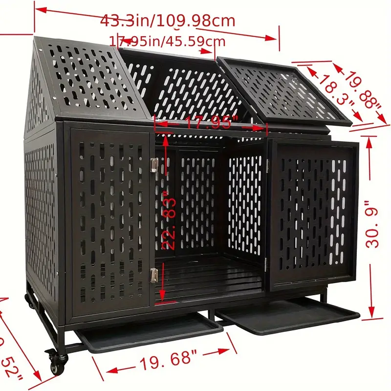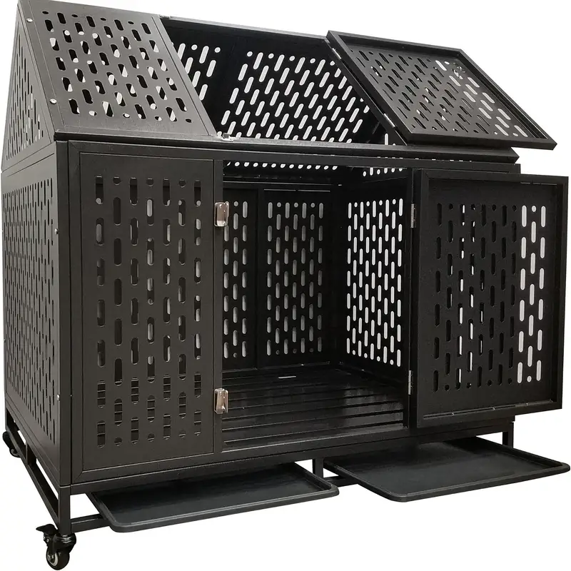 Jaula para perros de alta resistencia, jaula-kennel, techo grande, parque de juegos de metal resistente, adecuado para perros de tamaño grande y mediano, con cuatro cierres resistentes y cuatro ruedas bloqueables, 45 "/ negro