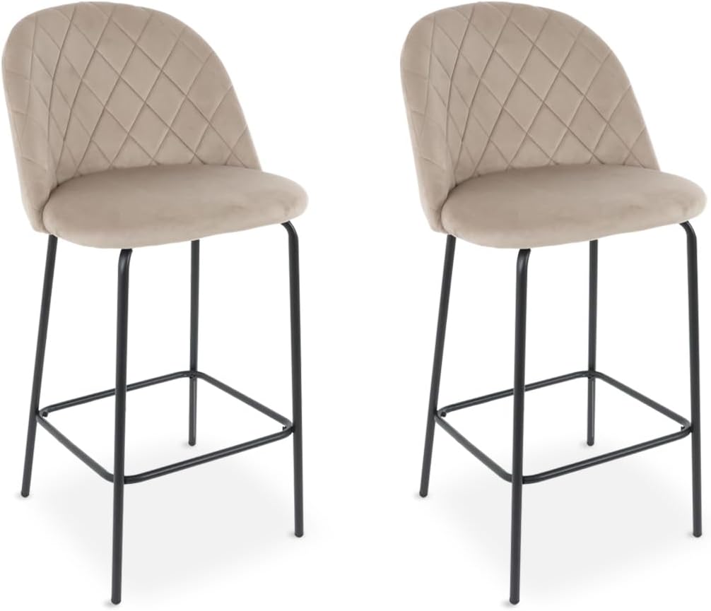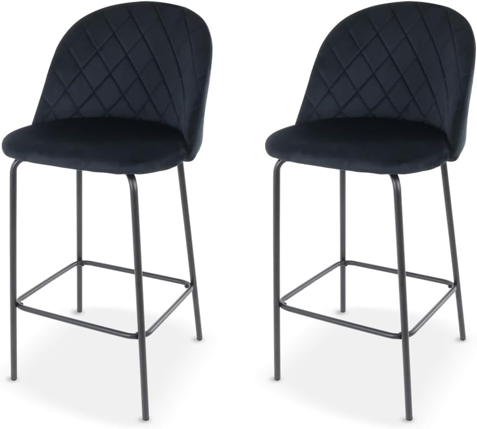 2 Sillas Altas Tapizadas Geneva para Barra de Cocina - Sillas para Bar - Asiento Suave de Tela y Patas de Metal - Banco Desayunador Elegante para Uso Interior y Decoración del Hogar (Negro)