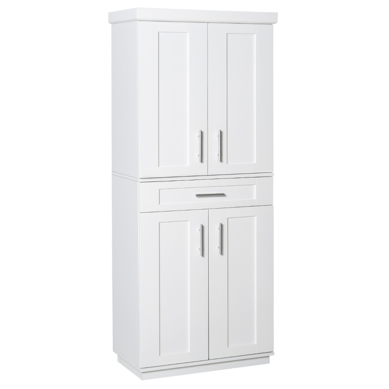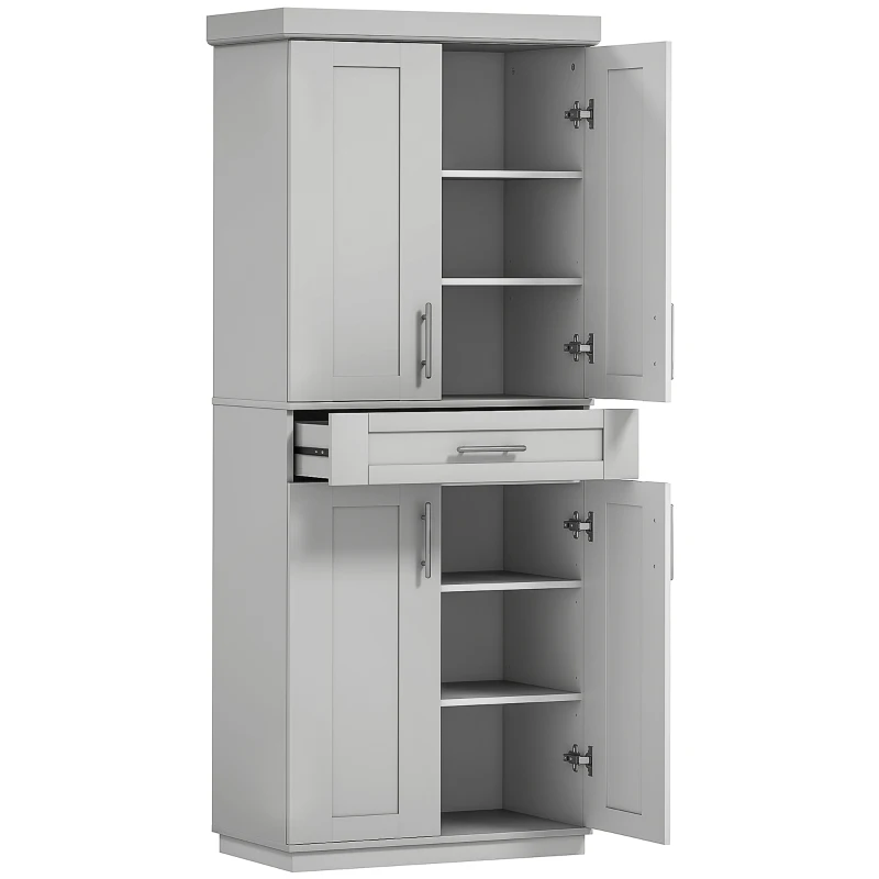 Con un diseño sencillo y moderno, esta despensa de cocina se puede adaptar a varios estilos de decoración. Viene con 2 armarios grandes con puertas para utensilios y platos de cocina y un cajón extraíble para pequeños accesorios. Con su diseño compacto y su gran capacidad de almacenamiento, le brindará una experiencia de uso perfecta.