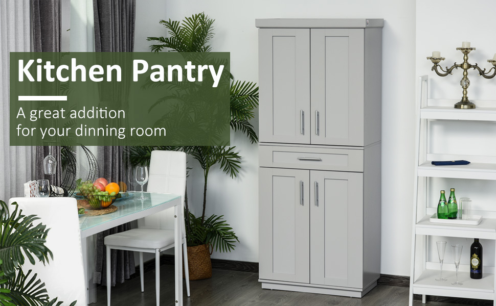 • - ESTILO MODERNO: Esta despensa de almacenamiento destaca por su sencillo aspecto gris. Con una apariencia neutra y una estructura compacta, esta despensa de cocina también se puede utilizar como aparador o estantería de almacenamiento en el comedor, la sala de estar o el estudio.