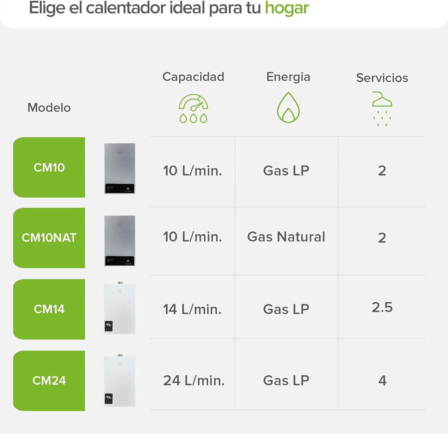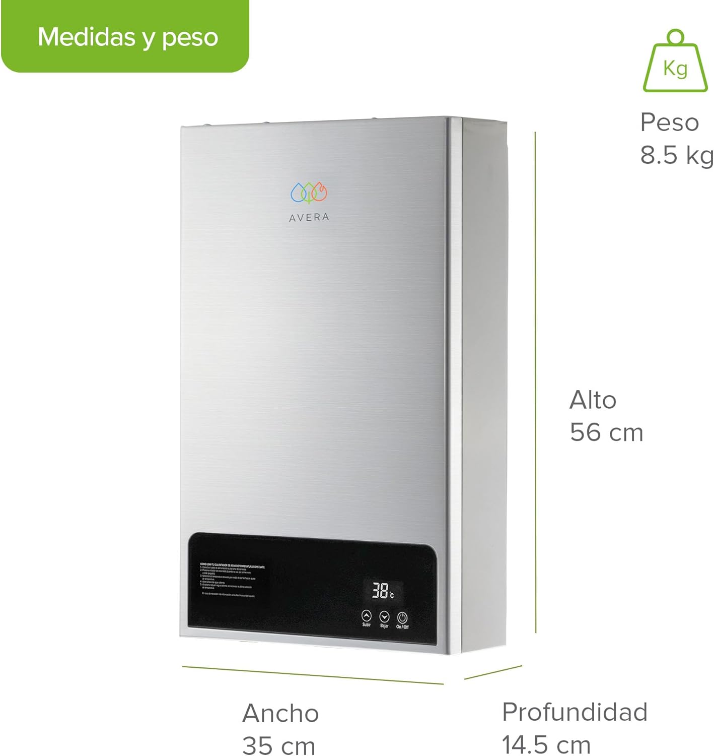 AVERA Calentador de Agua Instantaneo Modulante GAS LP, Boiler de paso, Capacidad 10 Litros/Minuto, 2 Servicios, Panel Digital, Pantalla LED, Ahorro de Gas LP, Seguridad y Facil Instalación | CM10