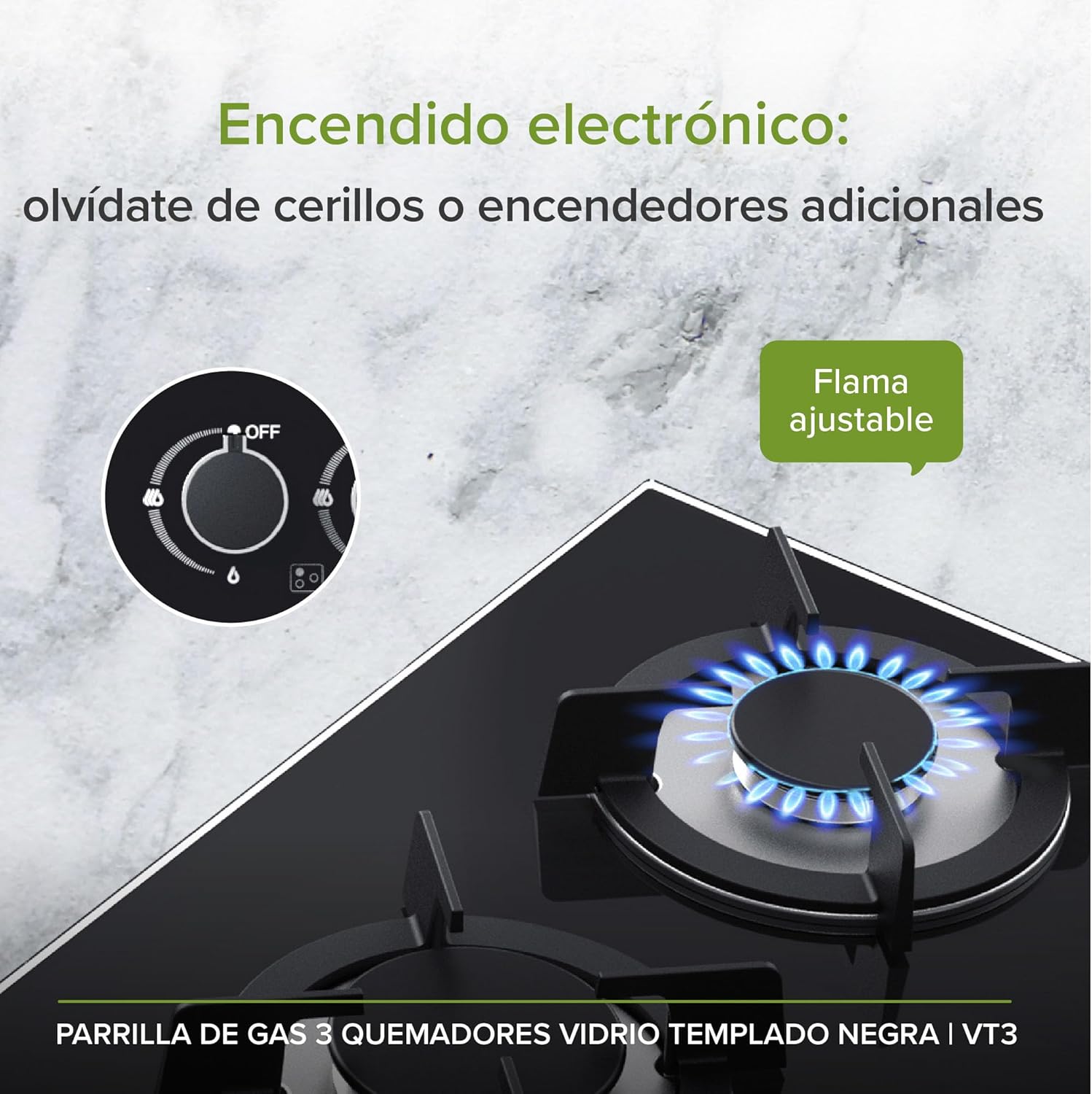 - Enciéndela fácilmente: el encendido electrónico resulta muy práctico, no batalles más con cerillos u otros encendedores.