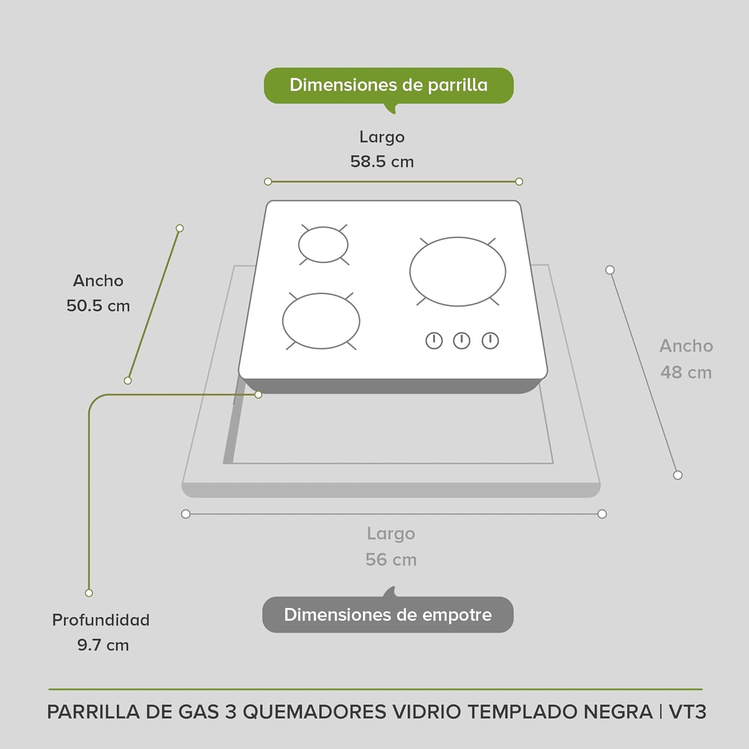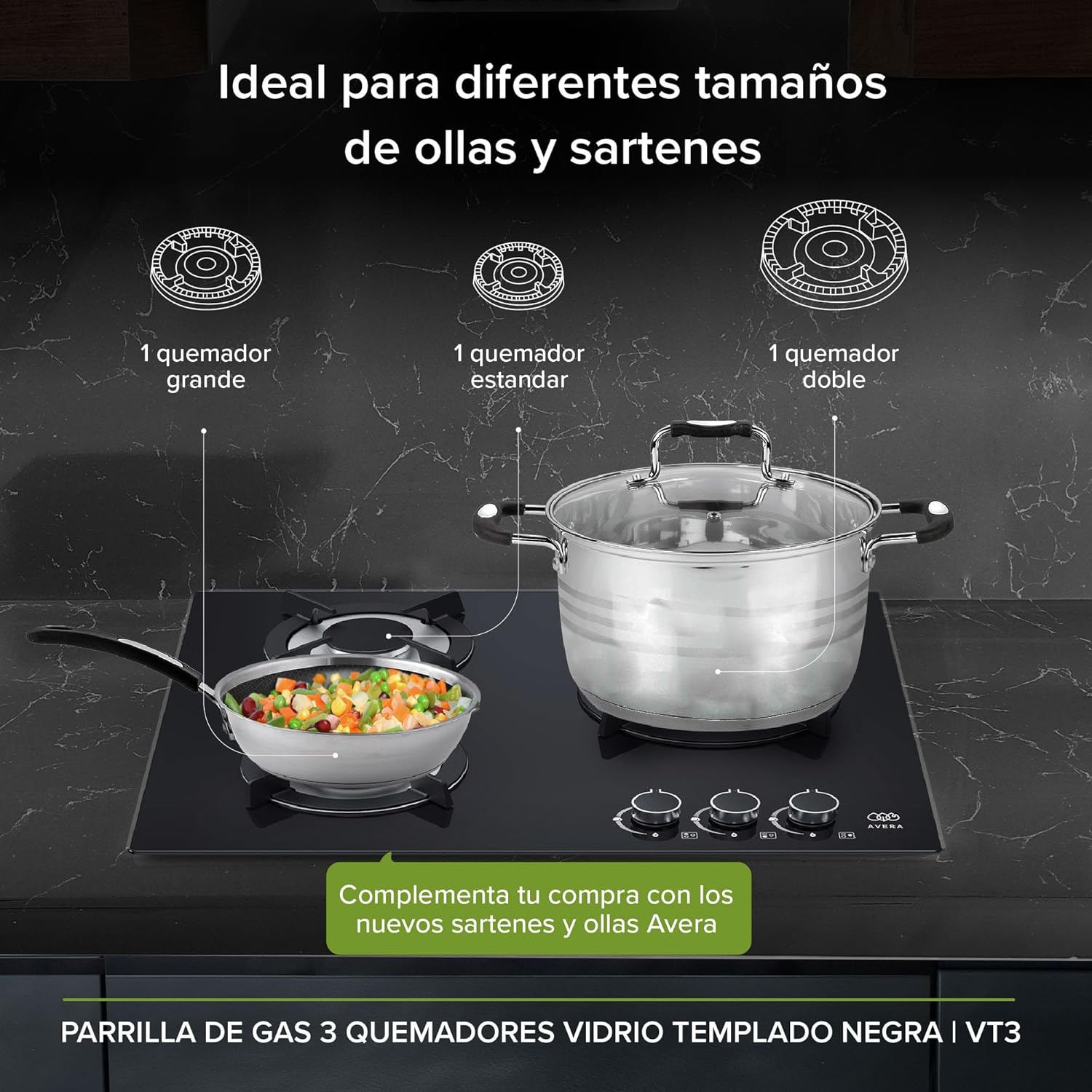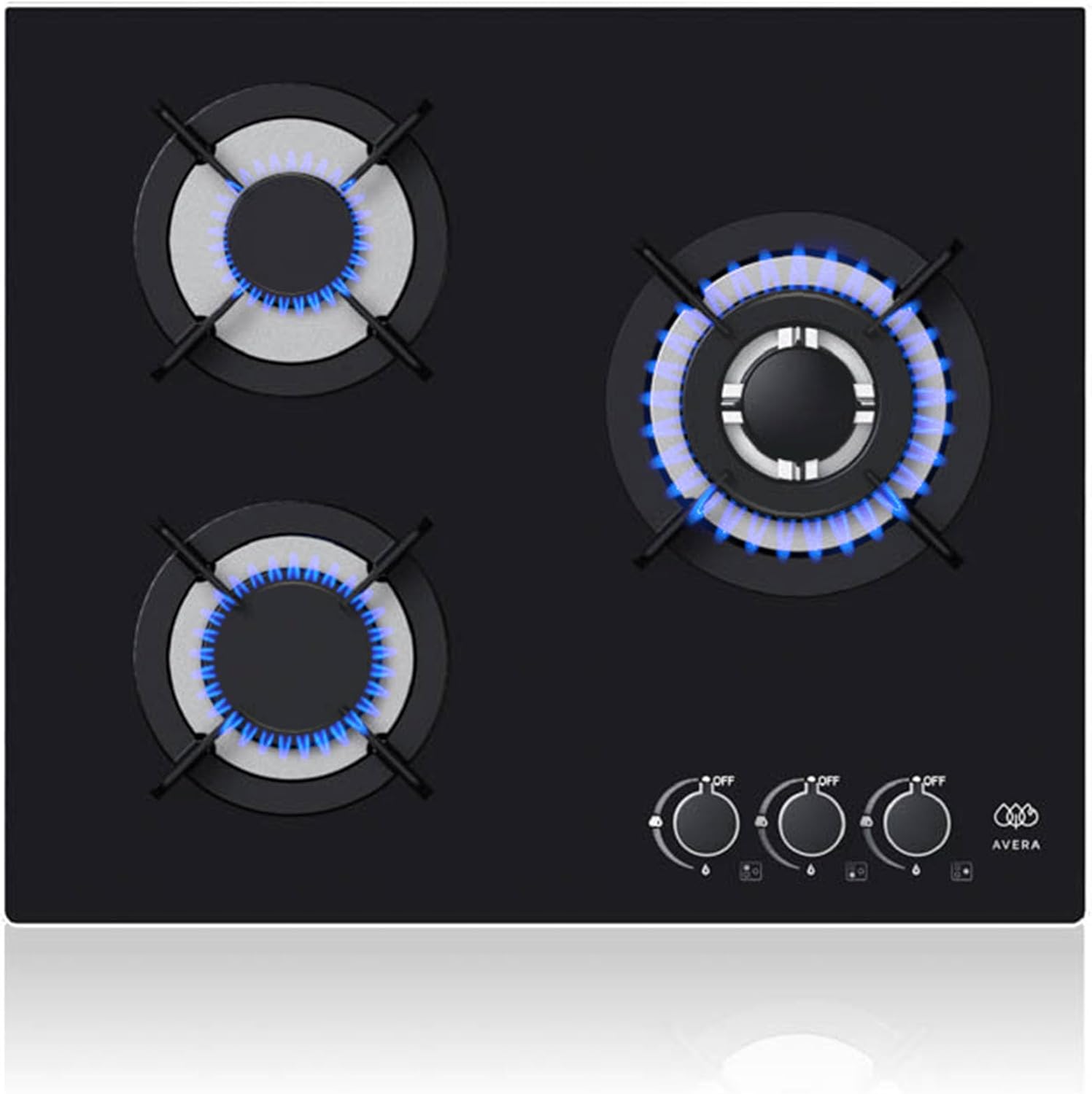 - Transforma tu cocina integral con diseño y practicidad con esta parrilla de 3 quemadores de vidrio templado negra.