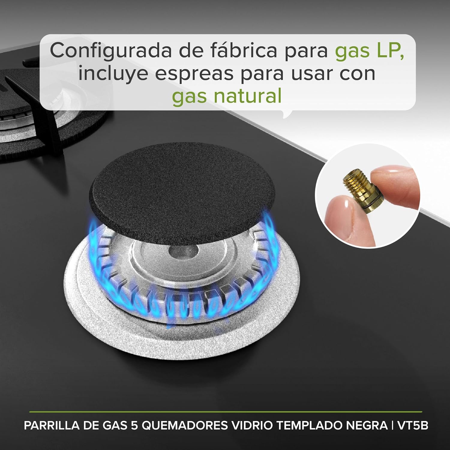 - ¡Es convertible! O sea que la puedes usar con gas natural o gas LP según lo prefieras. Viene con espreas que te facilitarán la transición.