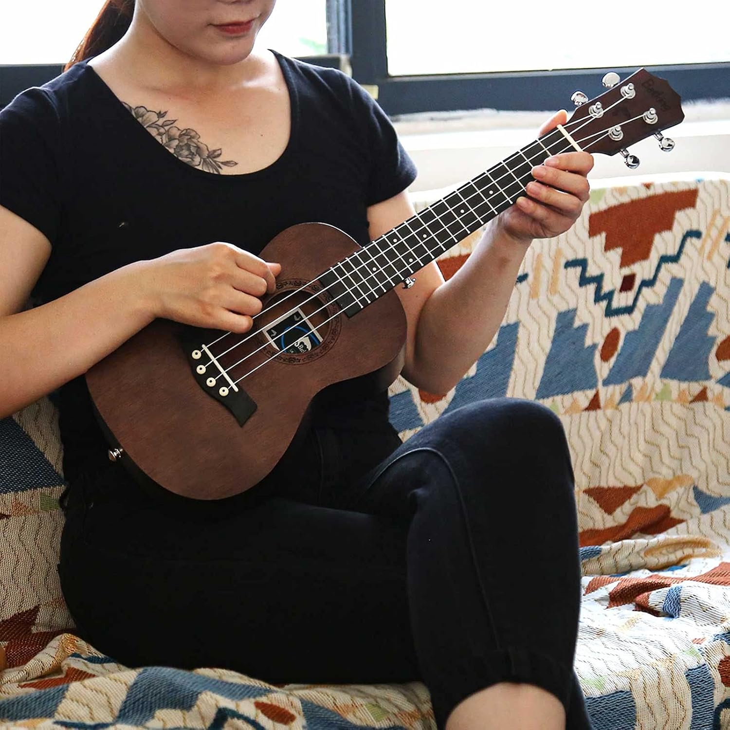 Batking Ukelele Soprano Tapa de caoba maciza, Viene con bolsa, Correa, Cuerdas de nailon de repuesto, Púas, Marrón