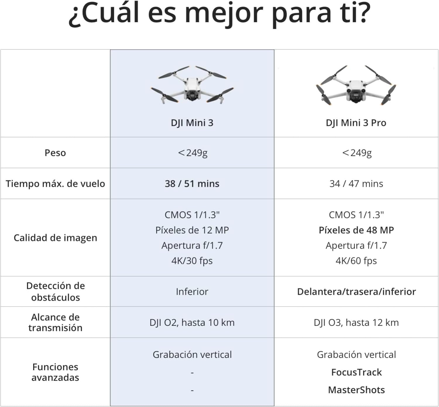 • DJI Mini 3 cuenta con valores de ISO dual nativo de ISO 100 e ISO 800.