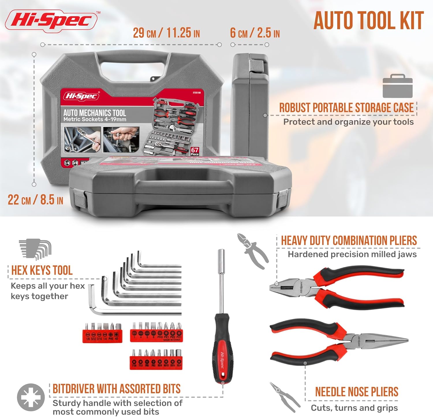 - 【Siempre Preparado】El conjunto Hi-Spec de herramientas de mano para mecánica automotriz es perfecto para tareas de bricolaje, reparaciones y mantenimiento de automóviles, bicicletas y motocicletas.