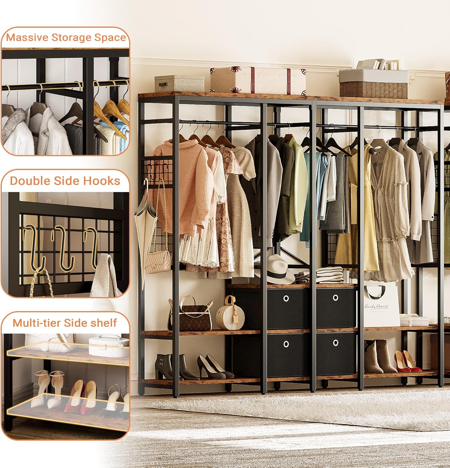 - Sturdy and Durable; This garment rack is constructed with a heavy-duty metal frame and thicker MDF board, ensuring durability and stability