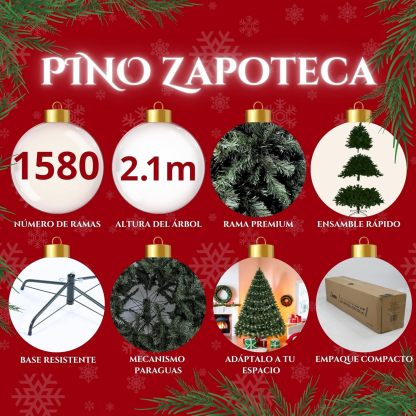 - PROPORCIONES IDEALES Nuestro árbol de navidad tiene una altura de 2.10 metros, logrando el volumen perfecto para cualquier adorno.