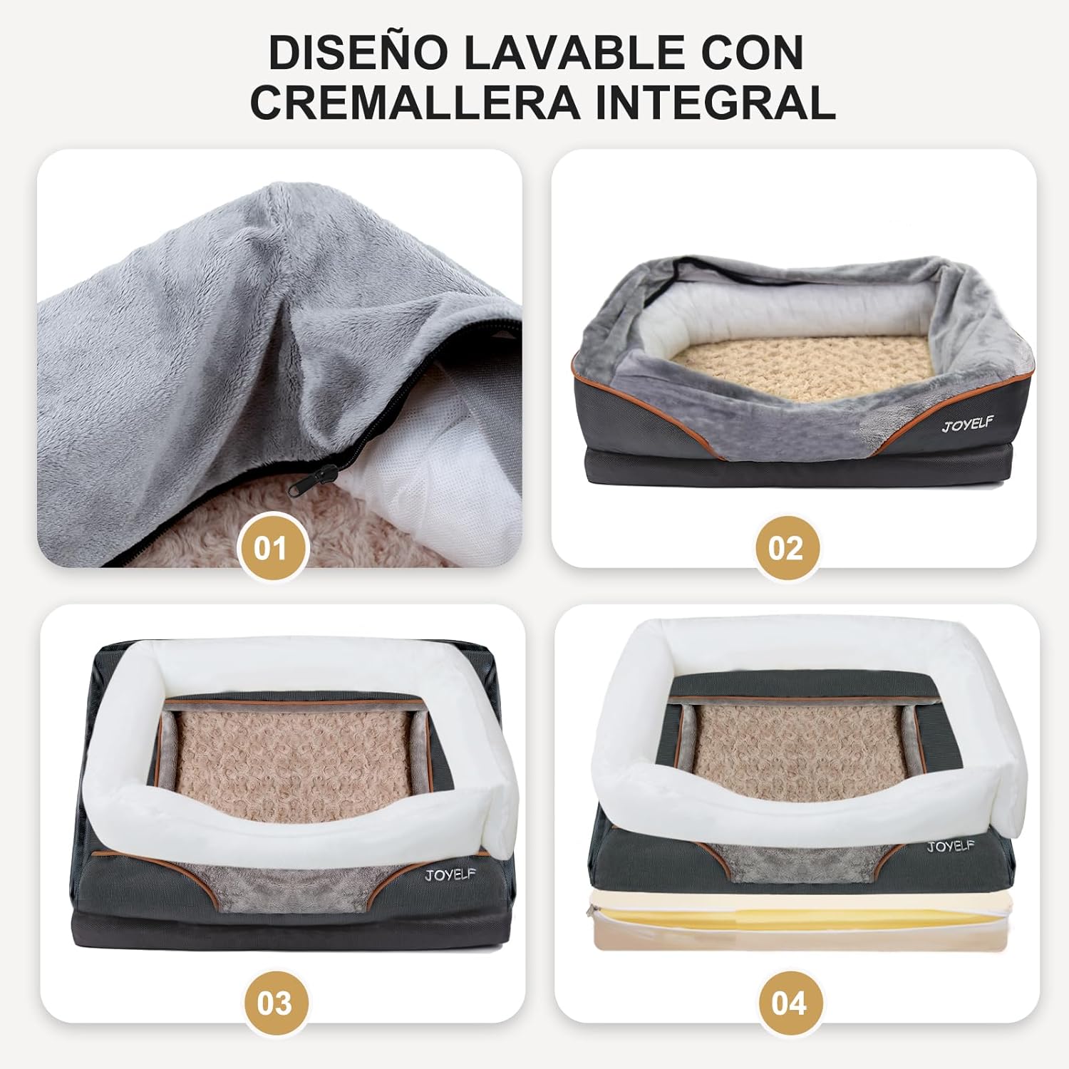 - MATERIALES DE ALTA CALIDAD: ① Base de espuma viscoelástica sólida que se adapta perfectamente al cuerpo de su mascota para una máxima comodidad; ② Espuma de memoria con material ignífugo; ③ El material inferior de la cama para perros viene con un respaldo de goma antideslizante incorporado La tela ofrece calidez y comodidad inigualables; ⑤ El cojín es grande y esponjoso, es relajante, transpirable y con buena resistencia.