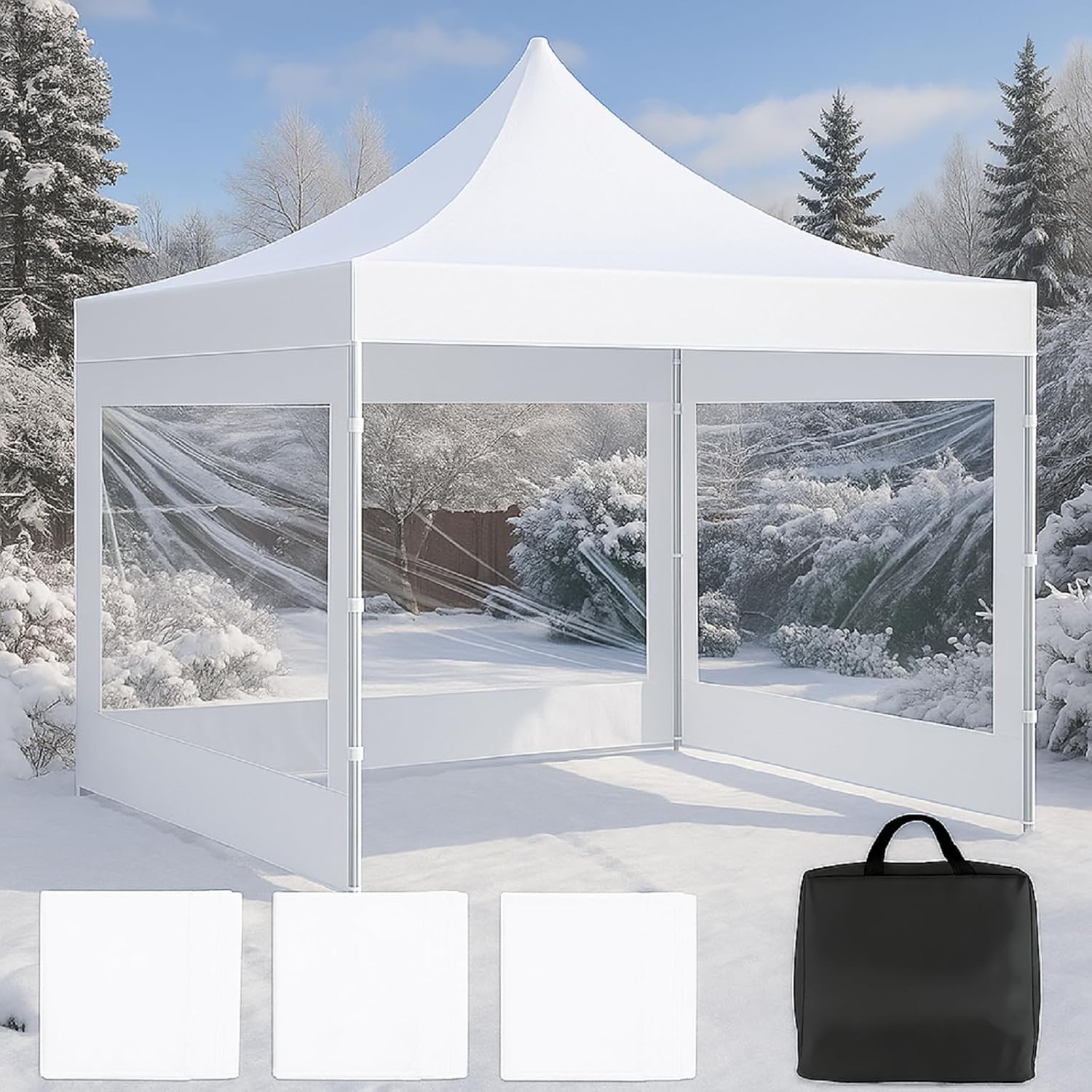Juego de 3 paredes laterales transparentes para toldo y bolsa de almacenamiento negra, paredes impermeables con ventanas de 25.4 x 25.4 cm, no incluye toldo, no tiene cierre