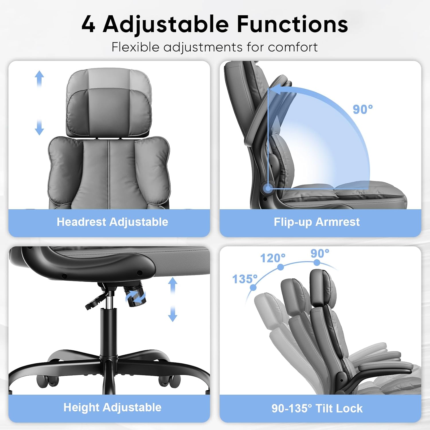 - Ajuste multifunción: el diseño de respaldo en forma de S se adapta a la curva del cuerpo humano puede soportar con precisión la región lumbar, reposacabezas ajustable de 2 pulgadas, altura ajustable de 5 pulgadas e inclinación de 90 a 135 ° para satisfacer las necesidades de diferentes usuarios, los reposabrazos reversibles pueden permitir que el brazo se mueva libremente o proporcionar apoyo