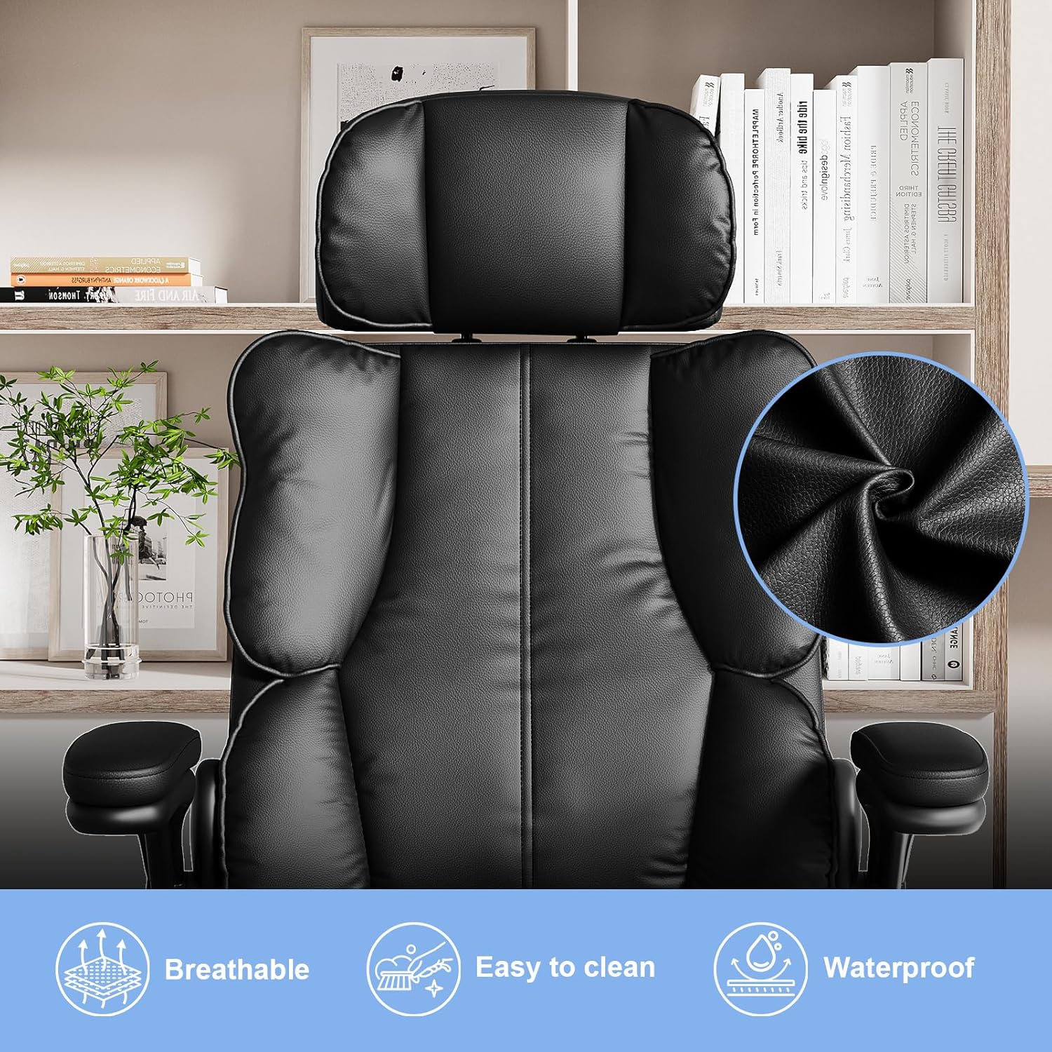 - Piel sintética de alta calidad: la silla ejecutiva está hecha de piel sintética entera, que es impermeable, agradable al tacto, resistente al desgaste, no destiñe, no se desprende y fácil de limpiar. El cuero está cortado y cosido a mano, aspecto simple y moderno
