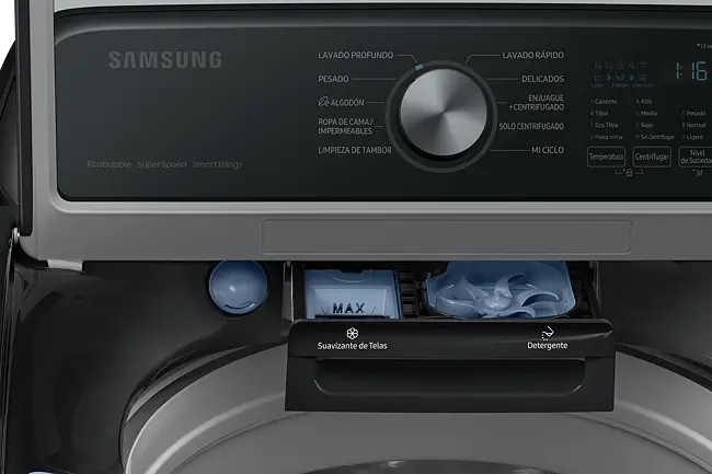Reduce el tiempo de lavado hasta un 57%*. Super Speed lava una carga en sólo 31 minutos*. Garantiza una limpieza potente y reduce el consumo de agua en un 7% **. Reduce el tiempo de enjuague lanzando potentes chorros de agua y acelera la velocidad de centrifugado.