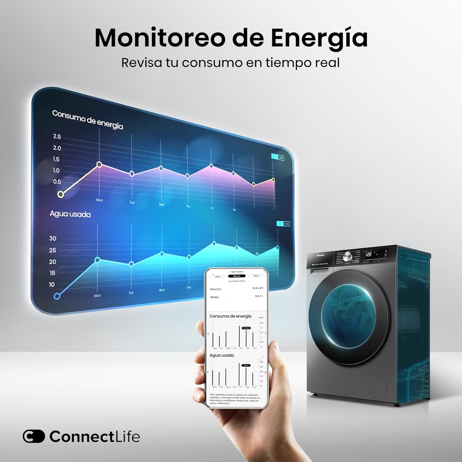 - Motor Inverter Durable Patas ajustables ConnectLife, la aplicación Hisense para controlar el equipo de forma remota No incluye cable trifilar o conector.