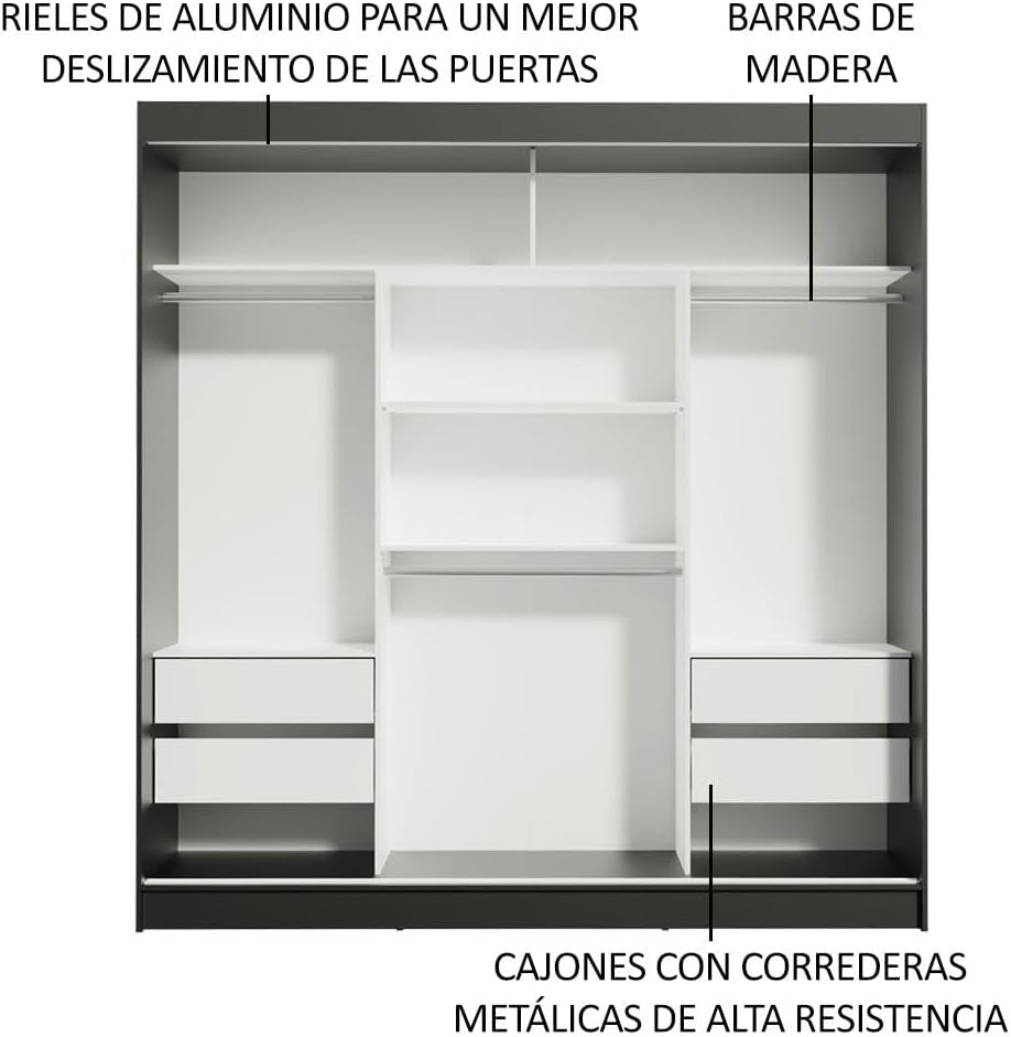 • USO EFICIENTE: Las puertas corredizas no comprometen la circulación. El tirador de aluminio es muy resistente y está ligeramente inclinado, lo que facilita su apertura.