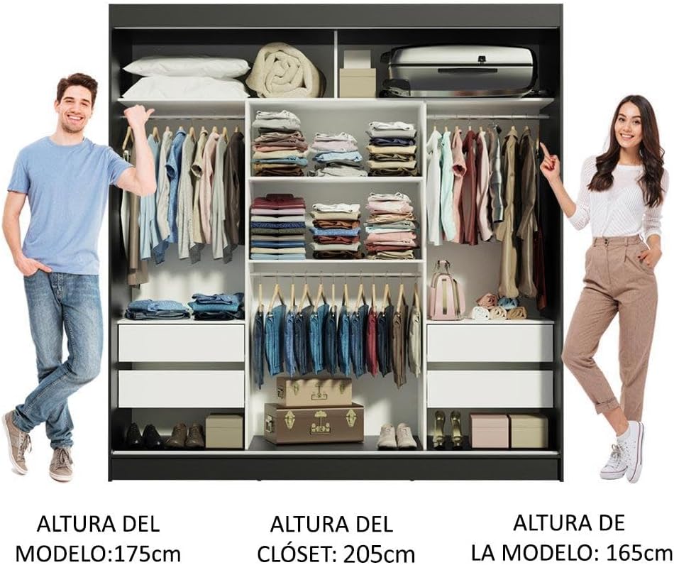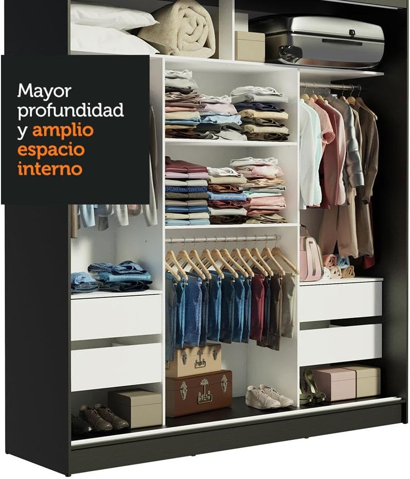 Madesa Ropero Closet con 3 Puertas Reno 01 - Negro/Blanco