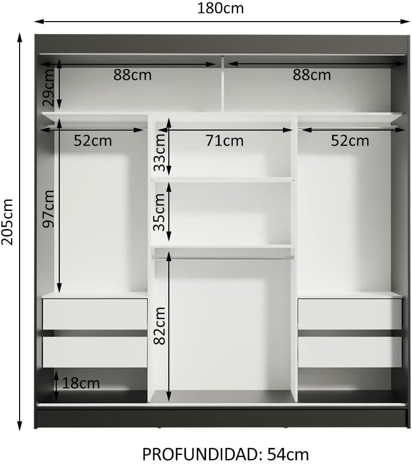 • CLOSET MODERNO Y CÓMODO: El armario es una opción moderna y compacta para su hogar. Una pieza versátil que puede utilizarse en el dormitorio o en diferentes habitaciones de la casa como armario multiusos.