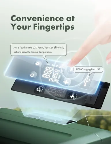 Panel LCD y puerto de carga USB: el refrigerador portátil APremium cuenta con un panel de control de pantalla táctil fácil de usar y sensible. Después de detener el ajuste de la temperatura del refrigerador durante 4 segundos, la pantalla mostrará con precisión la temperatura interna, lo que le permite configurar y controlar con precisión la temperatura interna, ajustar los modos sin