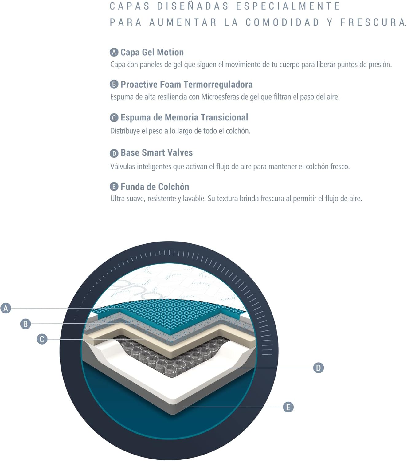 - AISLA MOVIMIENTOS Y ELIMINAR PUNTOS DE PRESIÓN. Cuenta con 868 válvulas independientes que actúan de forma individual para ajustarse a tu figura, aislar movimientos y eliminar puntos de presión.