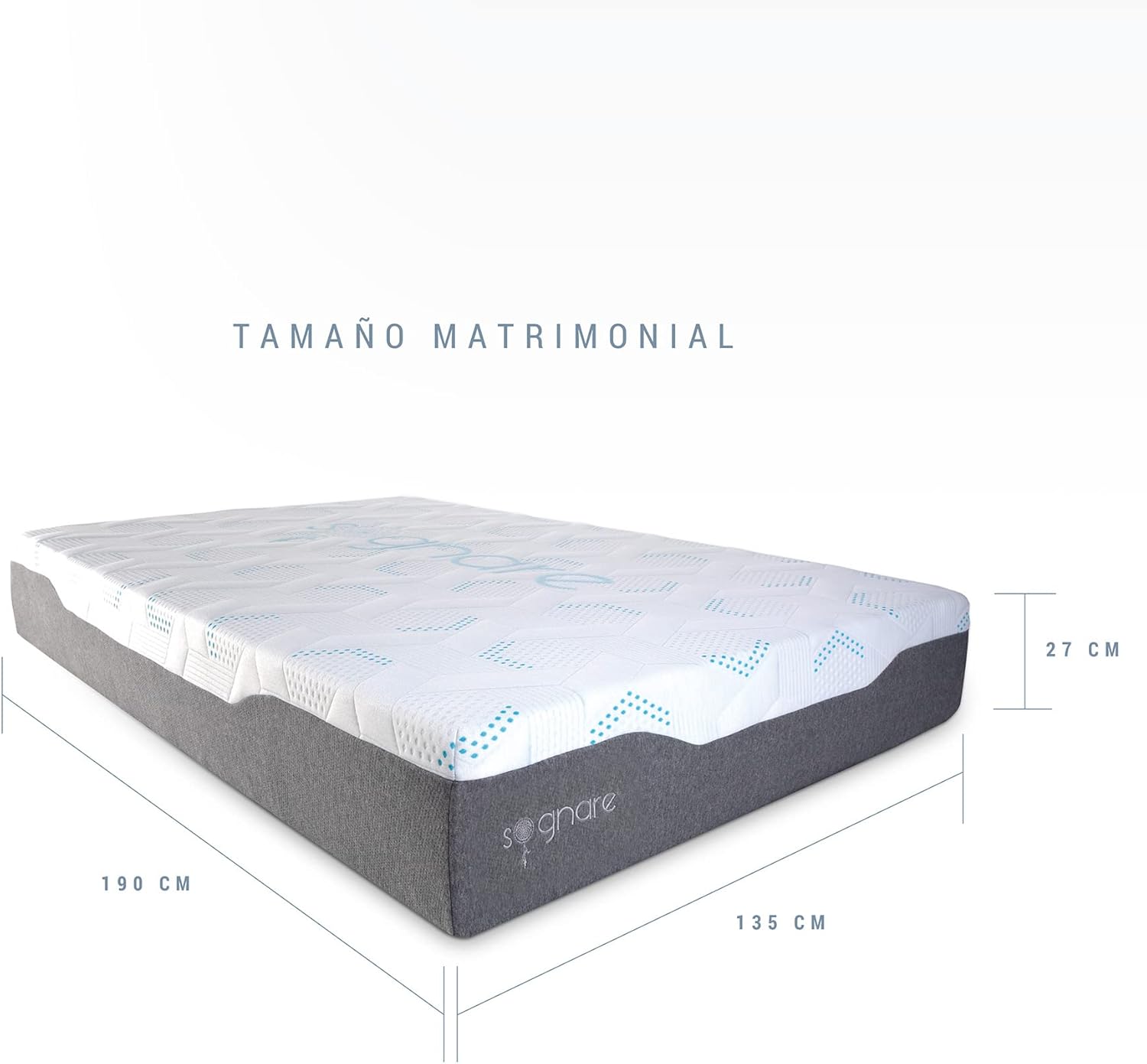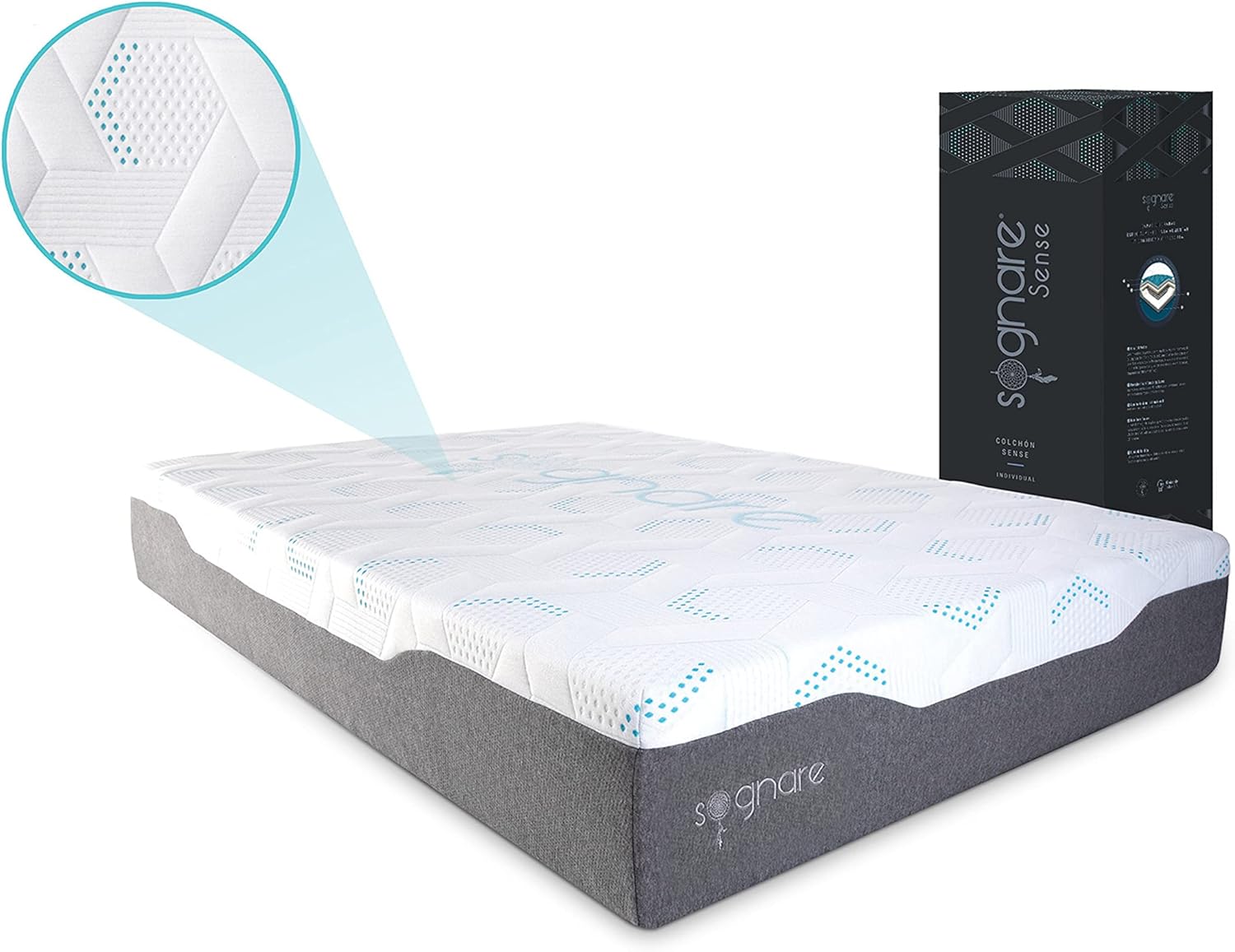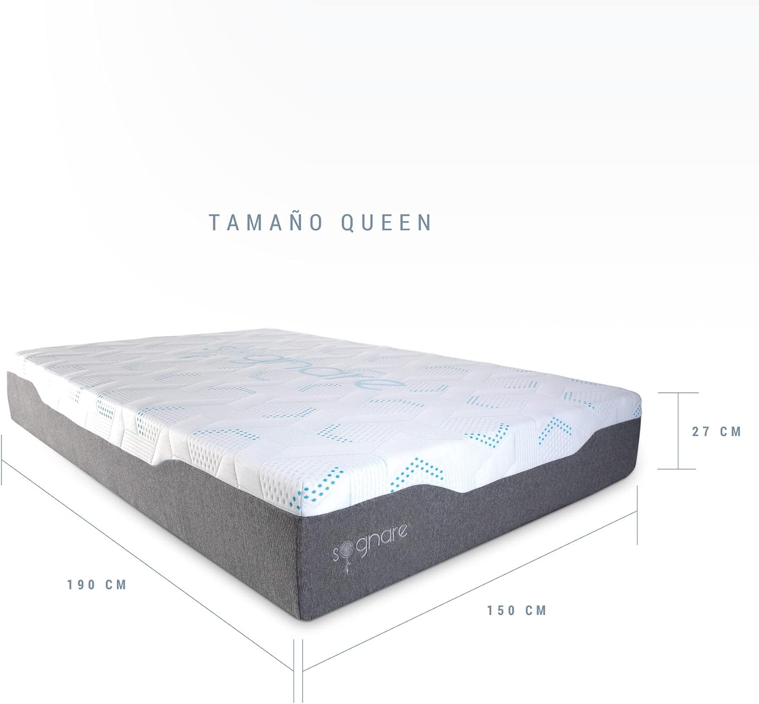 - SOGNARE COLCHÓN HÍBRIDO SENSE TAMAÑO QUEEN SIZE, CON MEMORY FOAM Y GEL ARTICULADO. Disfruta de una experiencia única con nuestro colchón híbrido de Memory Foam y Gel, diseñado para ofrecerte el máximo confort. Elige el mejor colchón híbrido y transforma tus noches. Medidas 150 cm x 190 cm x 27 cm. Incluye 1 colchón Sense Queen Size. Peso Máximo que soporta. 180 kg. Con Garantía de Satisfacción 100 noches.