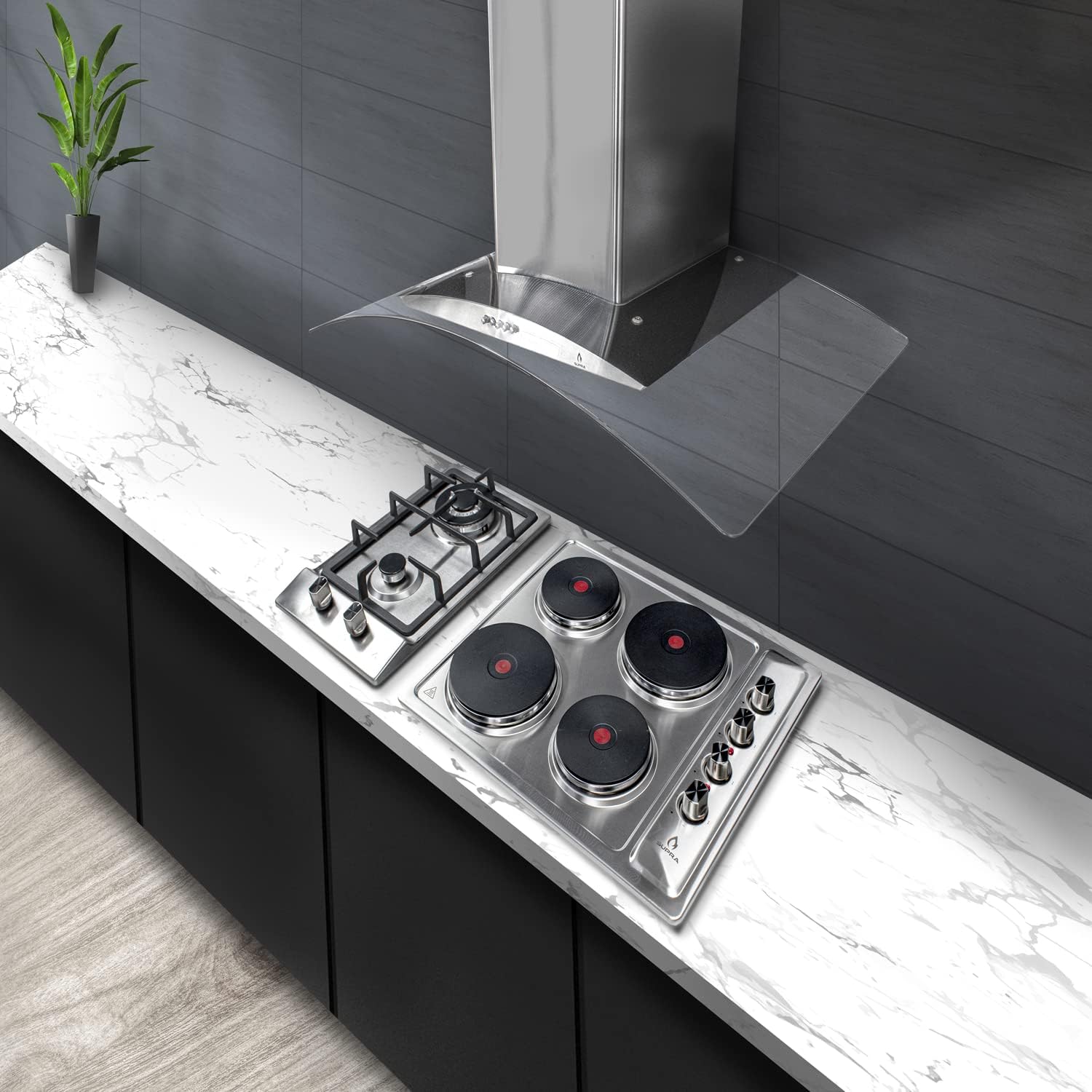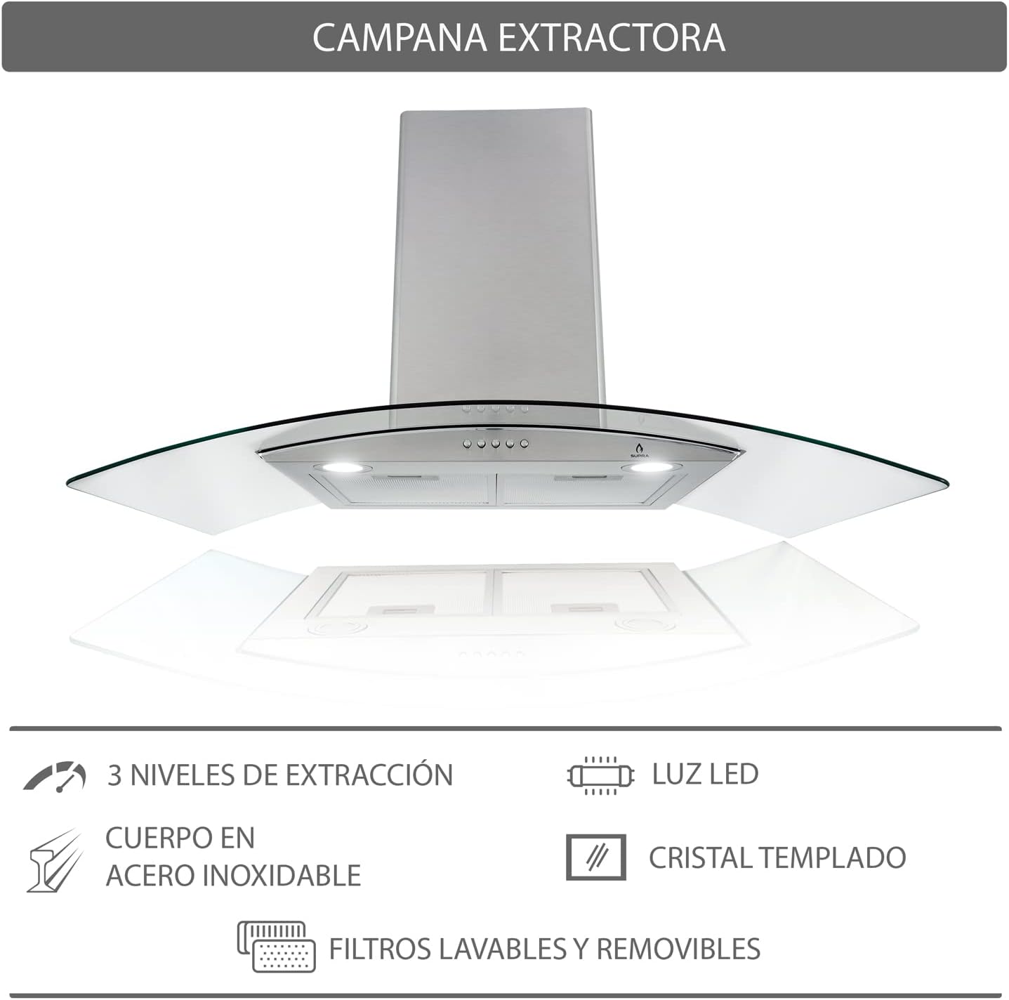 • "MEDIDAS PERFECTAS: ESTUFA ELÉCTRICA con Altura 13 cm x Frente 59 cm x Fondo 51 cm, | PARRILLA EMPOTRABLE con Altura 12 cm x Frente 31 cm x Fondo 51 cm, | CAMPANA DE COCINA con Altura de 36 cm x Frente 90 cm x Fondo 47 cm. Ideal para cualquier espacio en tu cocina."